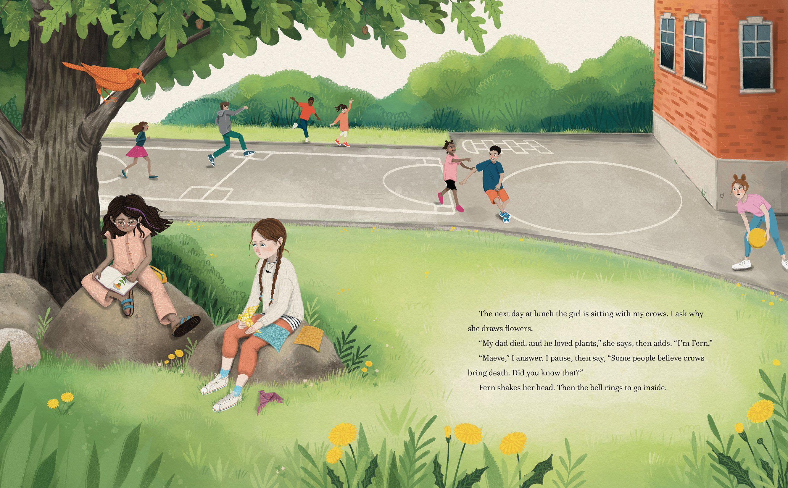 But Maeve is always alone—until she meets Fern, a new student mourning the recent loss of her father. As their friendship blossoms, Maeve struggles to share her unique perspective of the world with Fern because Maeve is autistic. Yet it’s through their friendship that Fern finds a creative way to honor her father’s memory. Fern’s drawings of her father’s favorite plants bloom into living magic, joining Maeve’s origami crows. Together the friends cultivate a magical garden—and an even more magical connection.