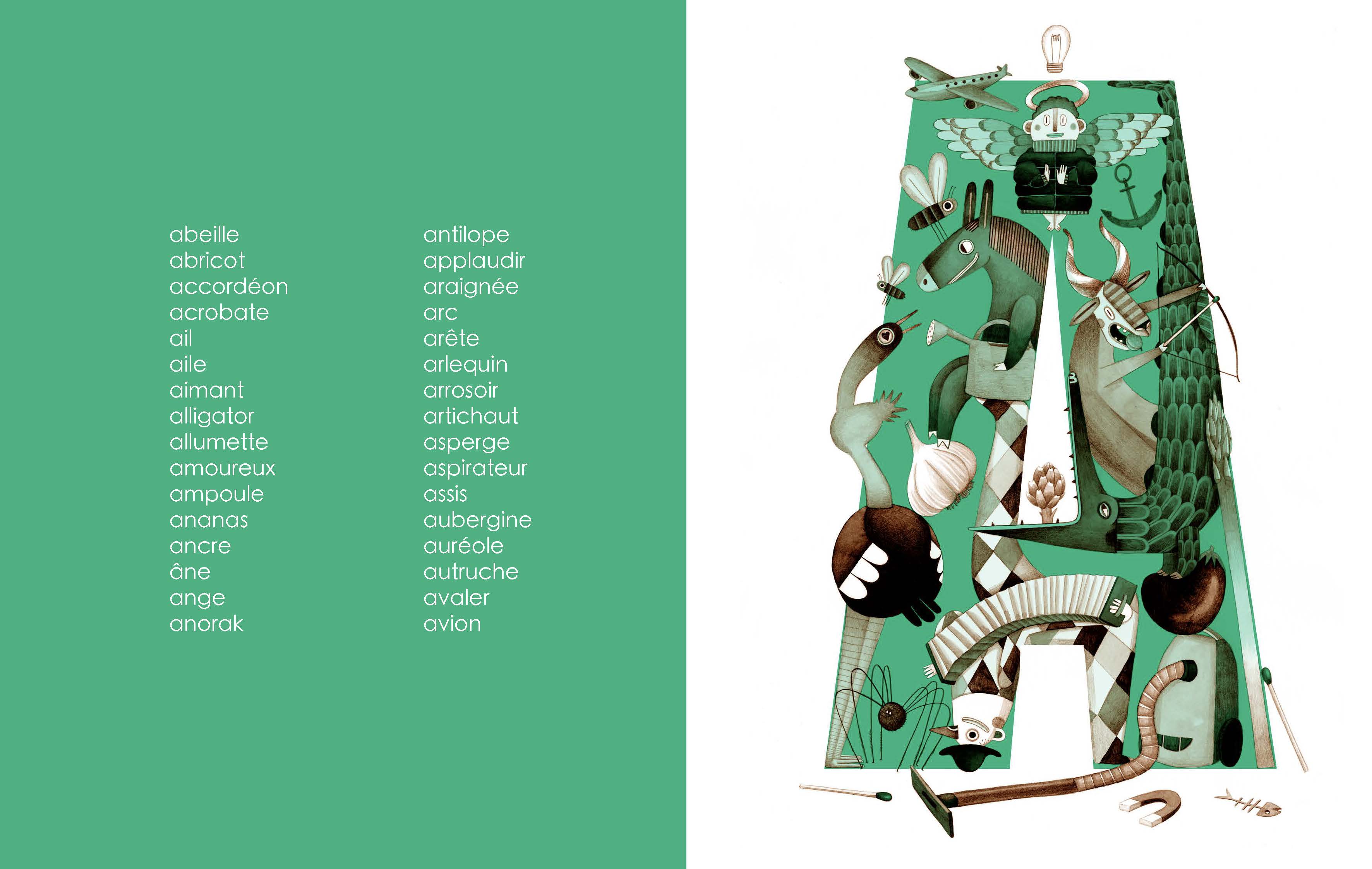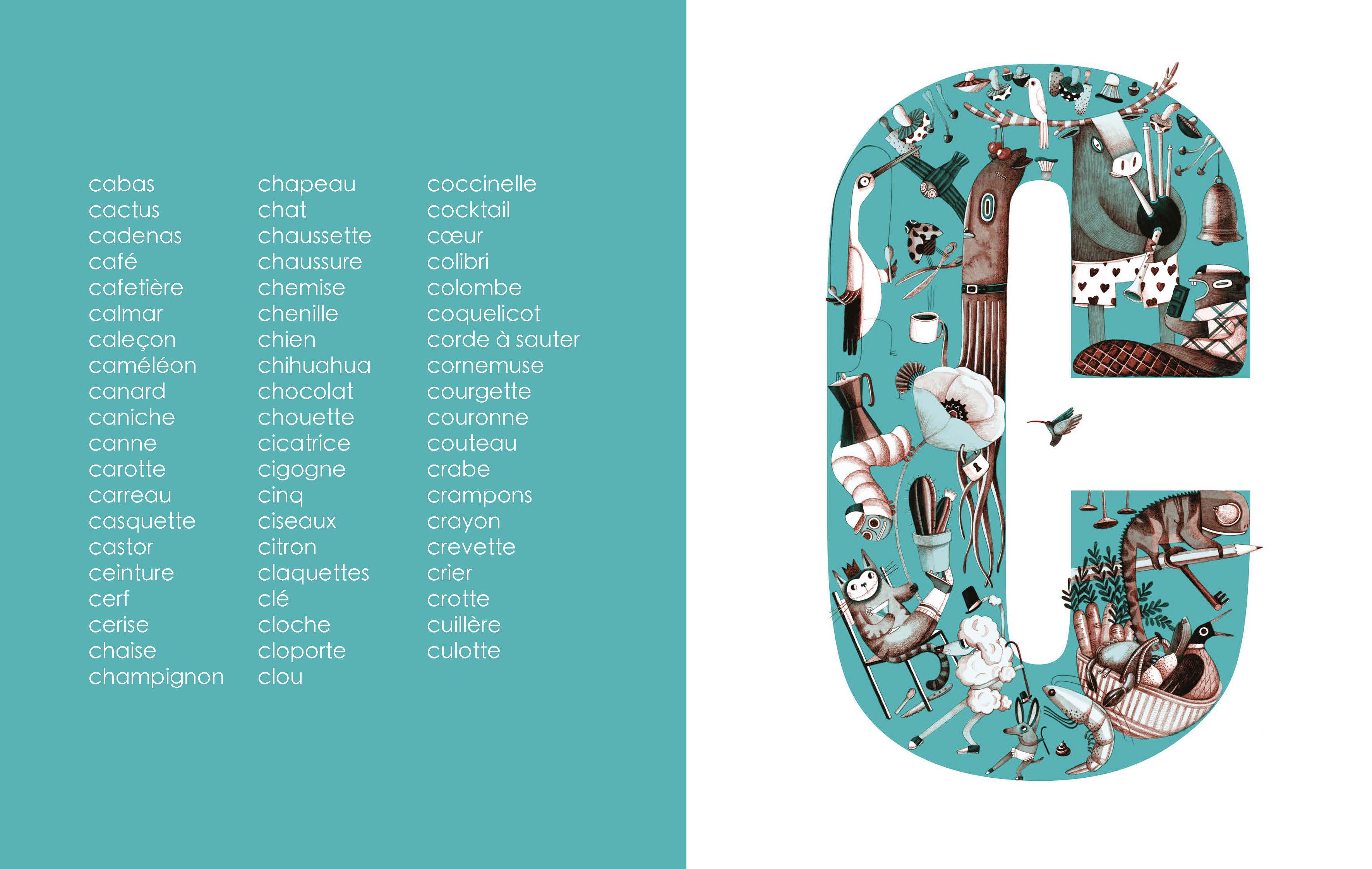 Vous aurez besoin d’yeux bien affûtés pour vous amuser avec cet abécédaire surprenant. Élaboré selon le principe du « cherche et trouve », ABC propose une foule de mots hétéroclites pour chaque lettre et vous invite à trouver leur représentation dans une illustration des plus déjantées. En effet, chaque illustration présente une lettre géante garnie à ras bord d’éléments fantaisistes et captivants.