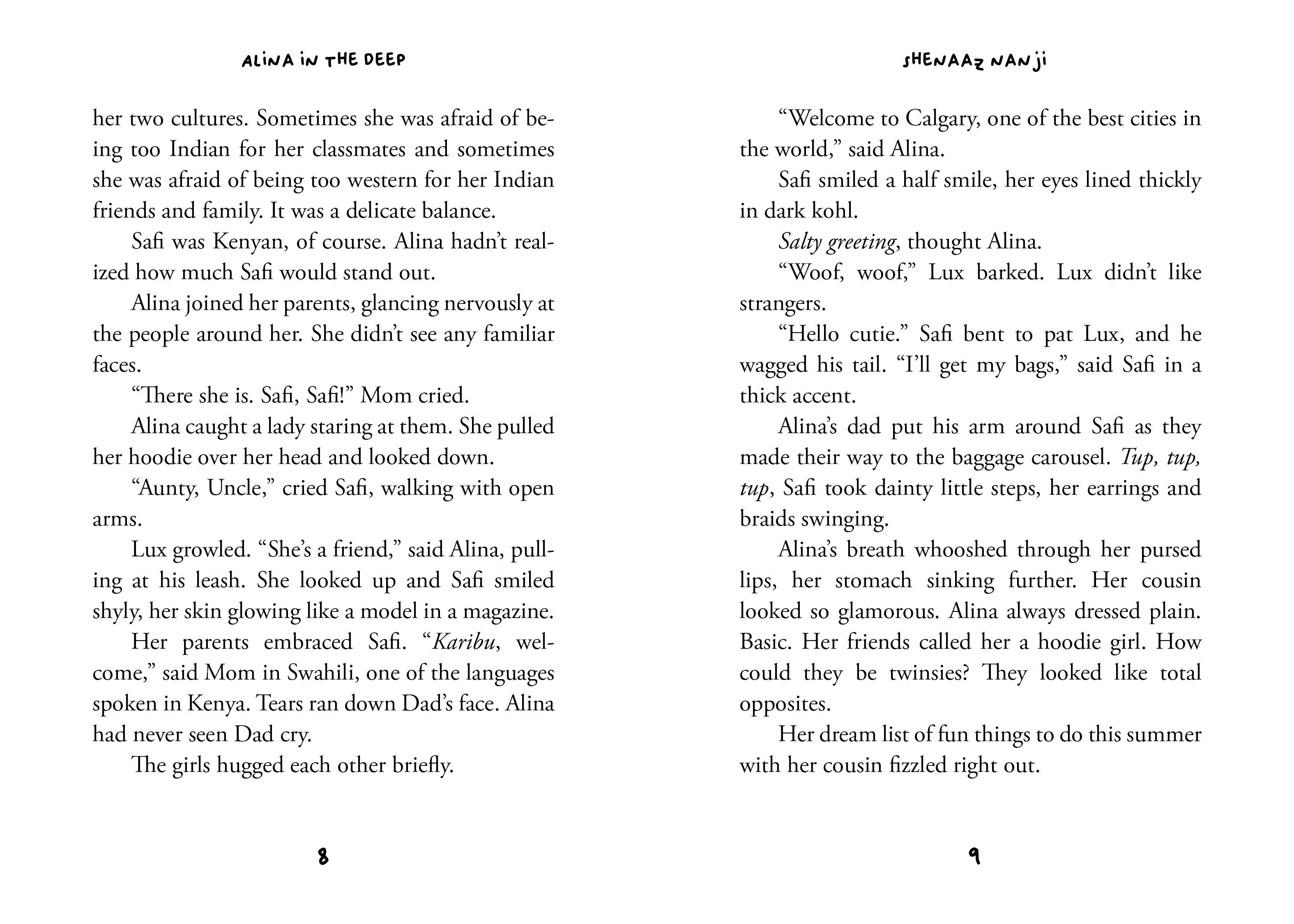 Alina creates a list of things to do with Safi, but nothing goes as planned when she finds it hard to connect with her cousin. Safi is not who Alina expected her to be. She wears her culture proudly and acts in ways that make her stand out—and Alina hates standing out!