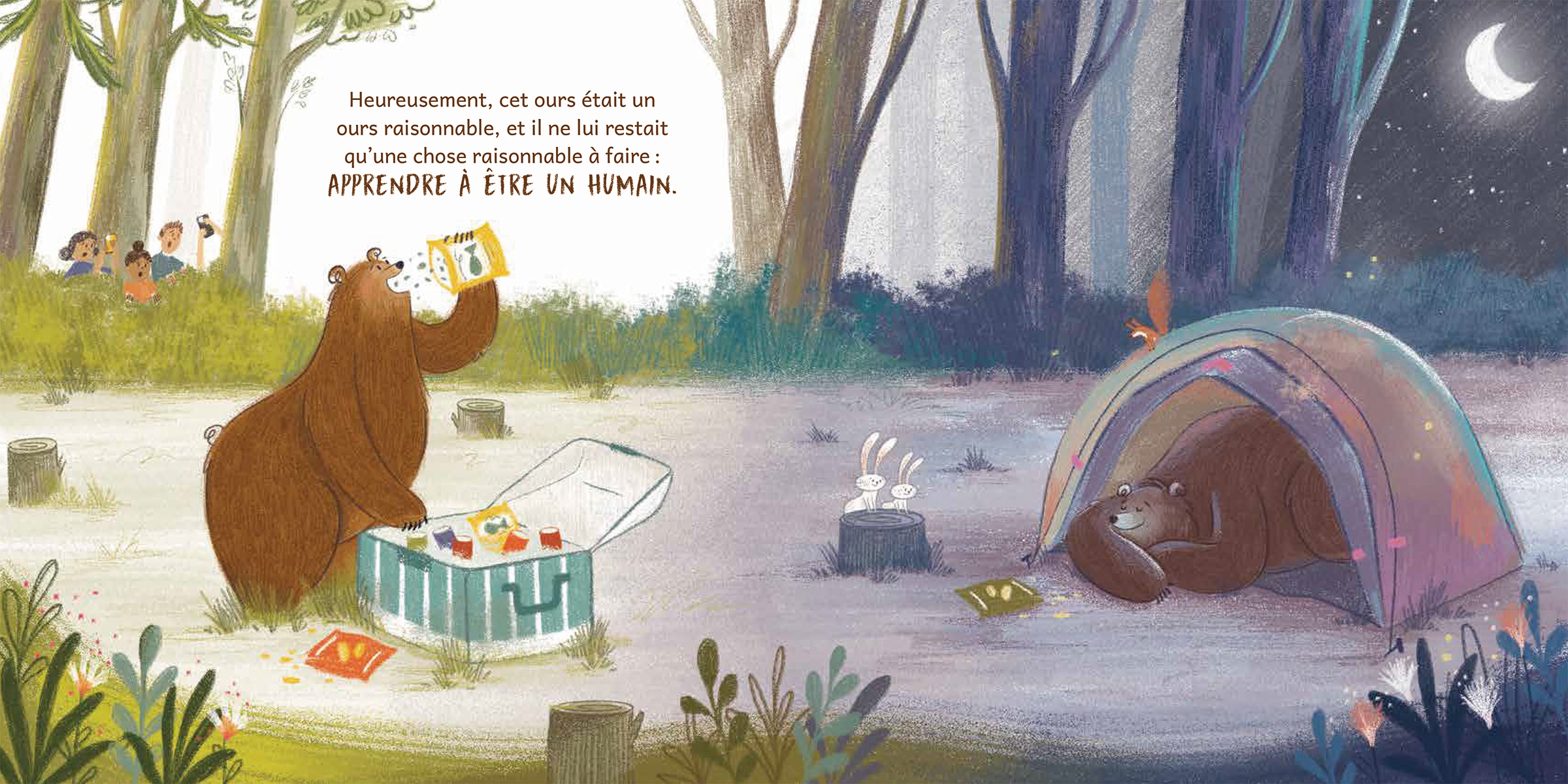Il était une fois un ours qui vivait dans une forêt et faisait toutes les choses habituelles des ours. Mais au fur et à mesure que sa maison et le monde qui l'entoure changent - moins de poissons, moins d'arbres et moins de calme - il remarque à quel point sa vie devient difficile à maintenir. La chose la plus raisonnable à faire est de s'adapter. L'ours demande donc l'aide d'une petite fille et lui demande de lui apprendre à être humain.