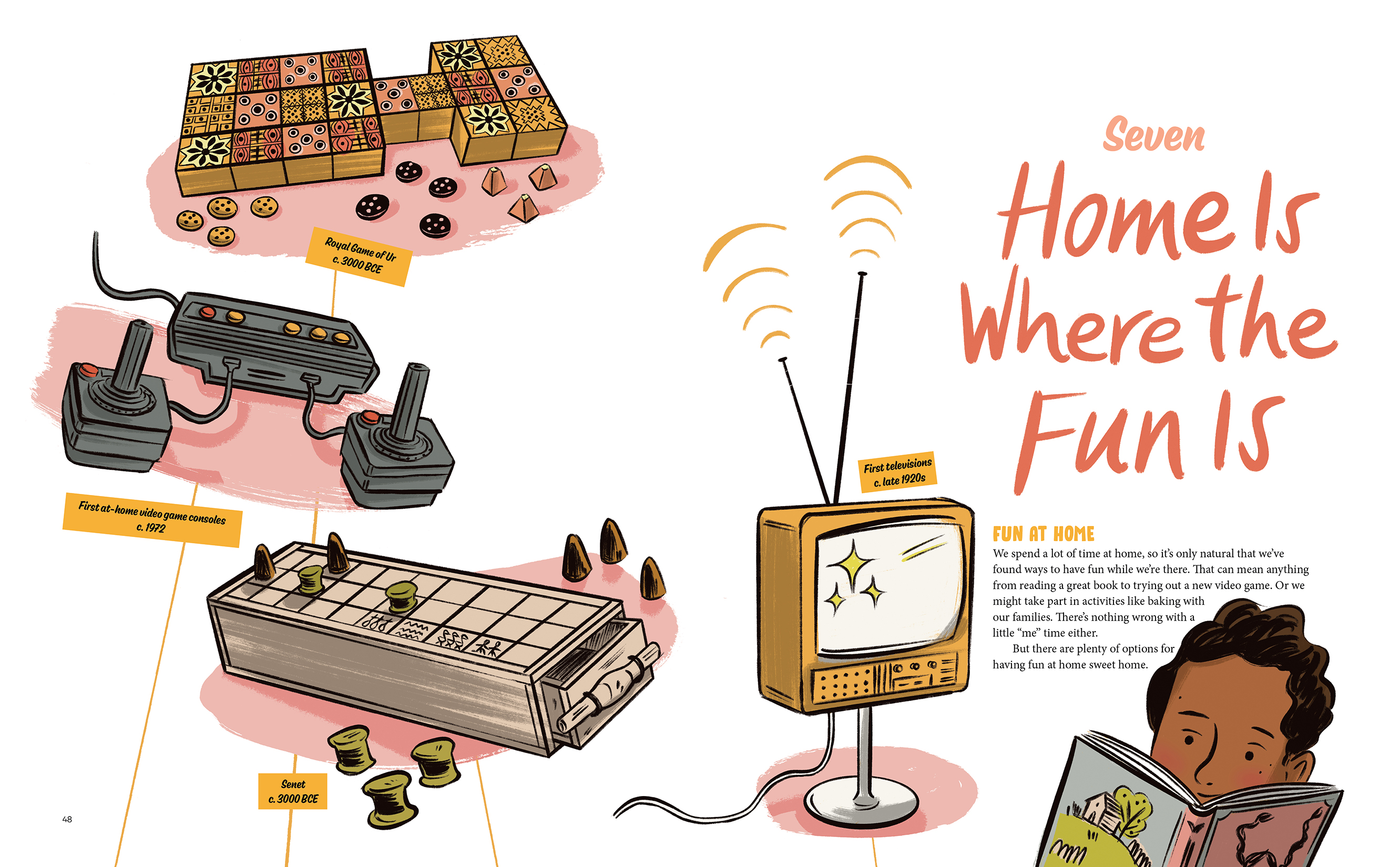 In Are We Having Fun Yet?, readers follow the evolution of fun. It started simply, with storytelling by a fire. Soon it grew into activities like banquets, spectator sports, theater and fairs, to name just a few. Today huge theme parks attract thrill-seekers and people step into virtual worlds for fun. And that’s just scratching the surface. With things like virtual reality, fidget spinners and global phenomena like Pokémon Go, who knows what the future of fun will hold!