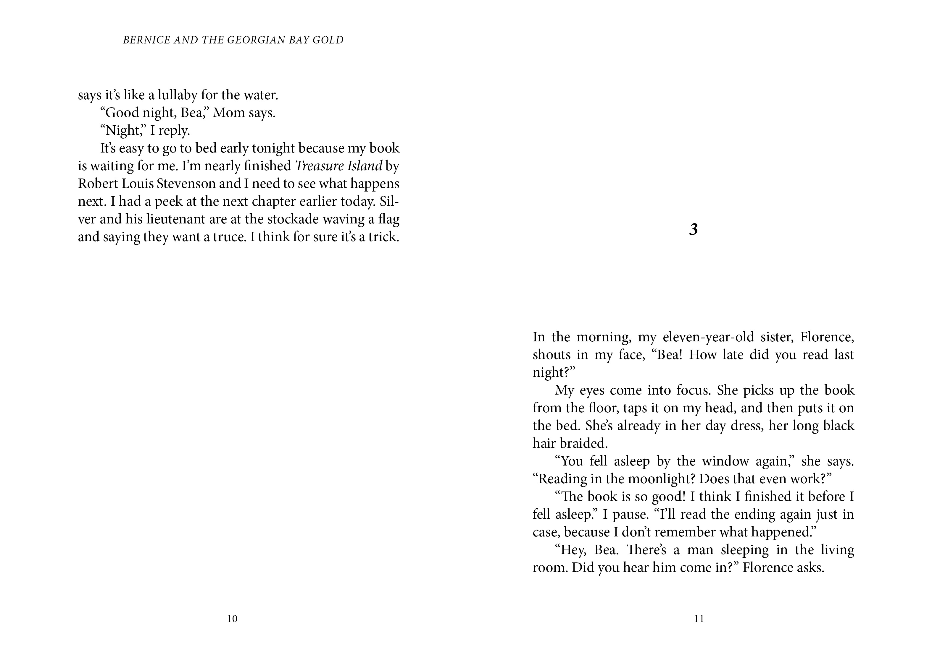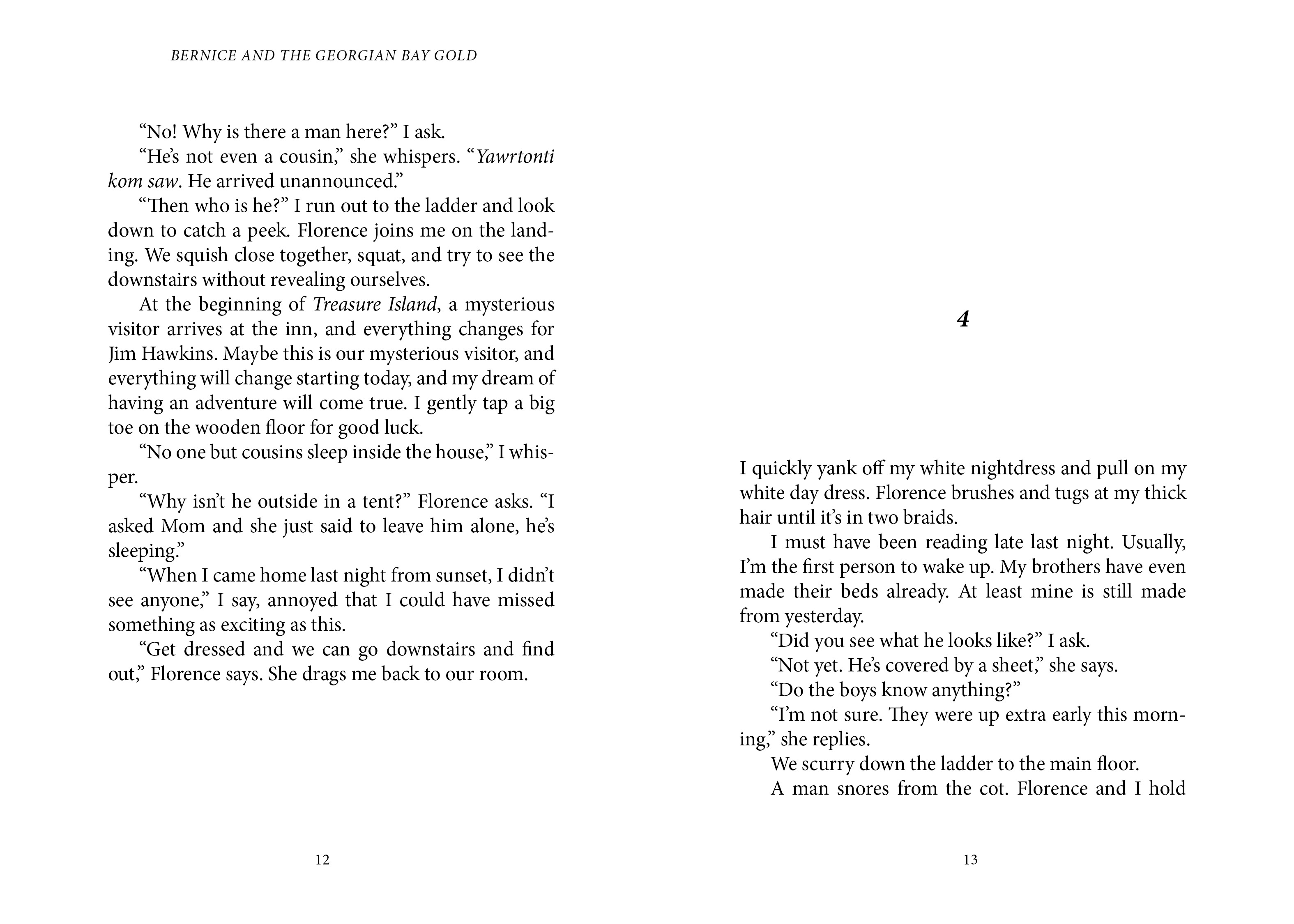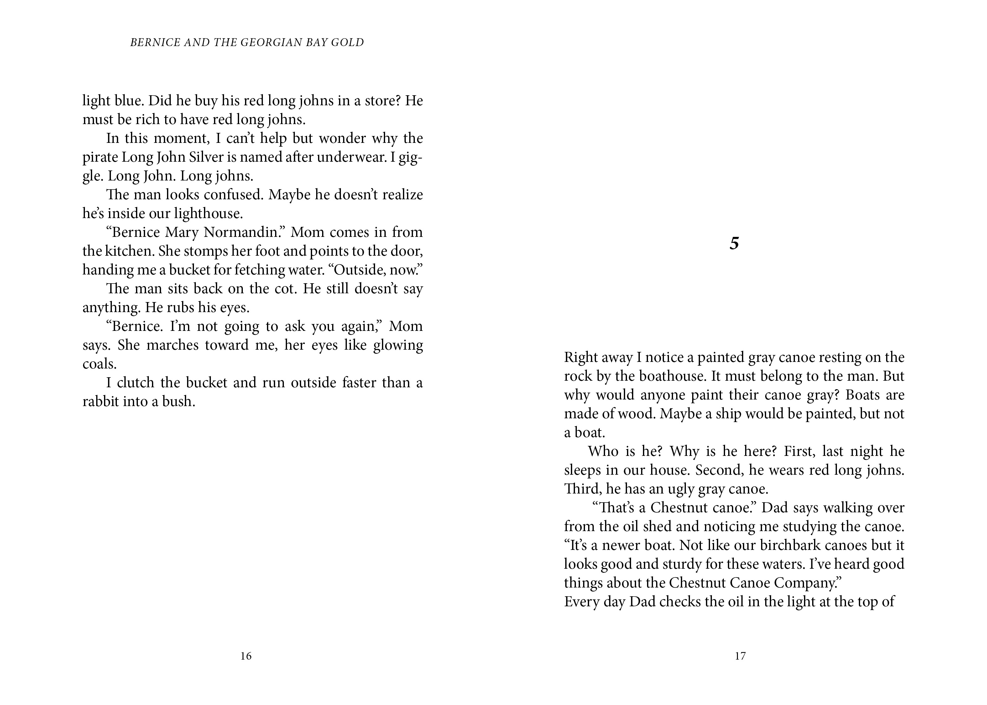 It's the summer of 1914. Eight-year-old Bernice lives with her family in a lighthouse on Georgian Bay. One day Bernice wakes up to find a stranger named Tom Thomson sleeping in their living room. When she overhears him talk about gold on a nearby island, Bernice is determined to find it.