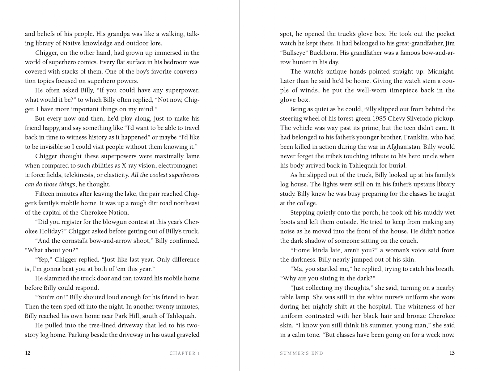 An ominous message conveyed to sixteen-year-old Billy Buckhorn by the spirit of his deceased grandmother opens the door to astounding supernatural events. Struck by lightning and brought back from the brink of death, Billy must contend with extraordinary visions and psychic insights. These new “gifts” prove both challenging and necessary as Billy begins to understand the peril behind his grandmother’s words and realizes his calling to protect and defend his people.
