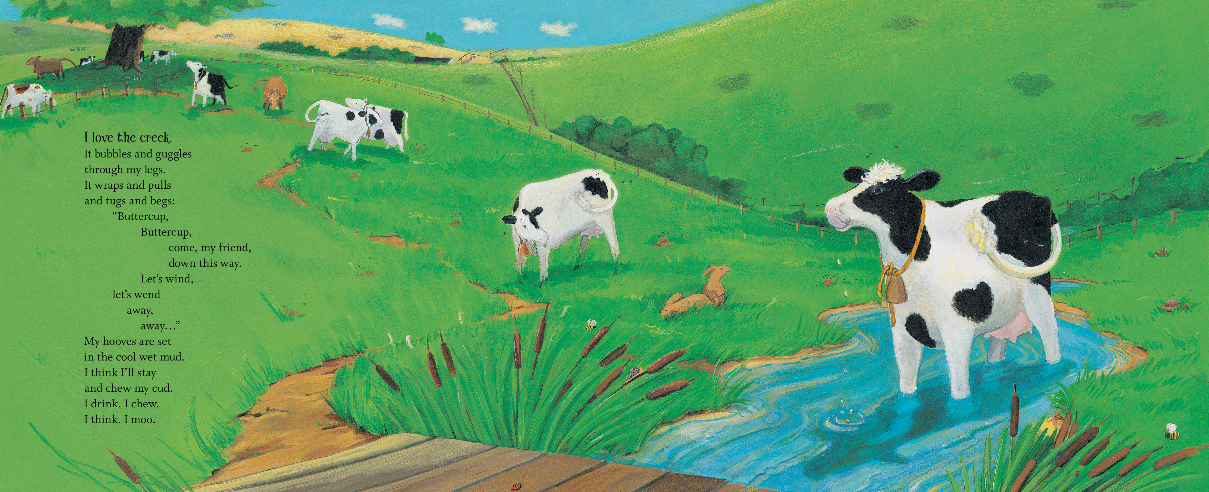 In rhyming text that winds like a creek through a farmer's field, the book takes readers on a journey through one lovely day in Buttercup's life. Whether she is ruminating on the mud beneath her feet or on the moon and the stars in the blue-black sky, she draws us deep into her rich and wonderful world, reminding us all to be grateful for life's simple pleasures.
