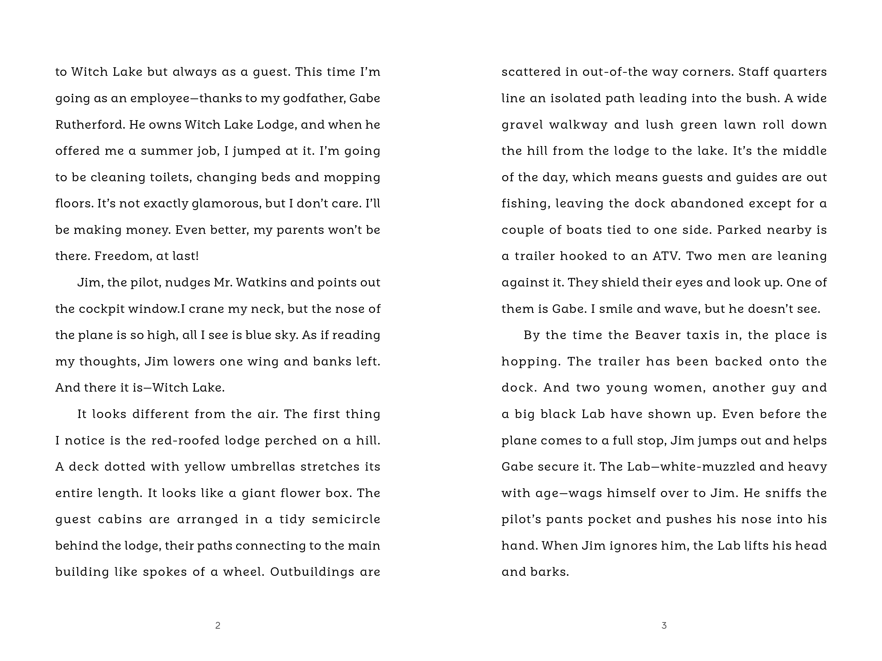 Bailey is working at her first summer job, as a cabin girl at a fly-in fishing camp at Witch Lake. April, an older waitress with street smarts, takes Bailey under her wing and the two girls become friends. It’s all good until another waitress burns her arm and has to leave. Bailey gets a sudden promotion, and April is asked to help clean the cabins. April becomes far from friendly and Bailey finds herself alone again and messing up on the job—and possibly seeing the ghost.