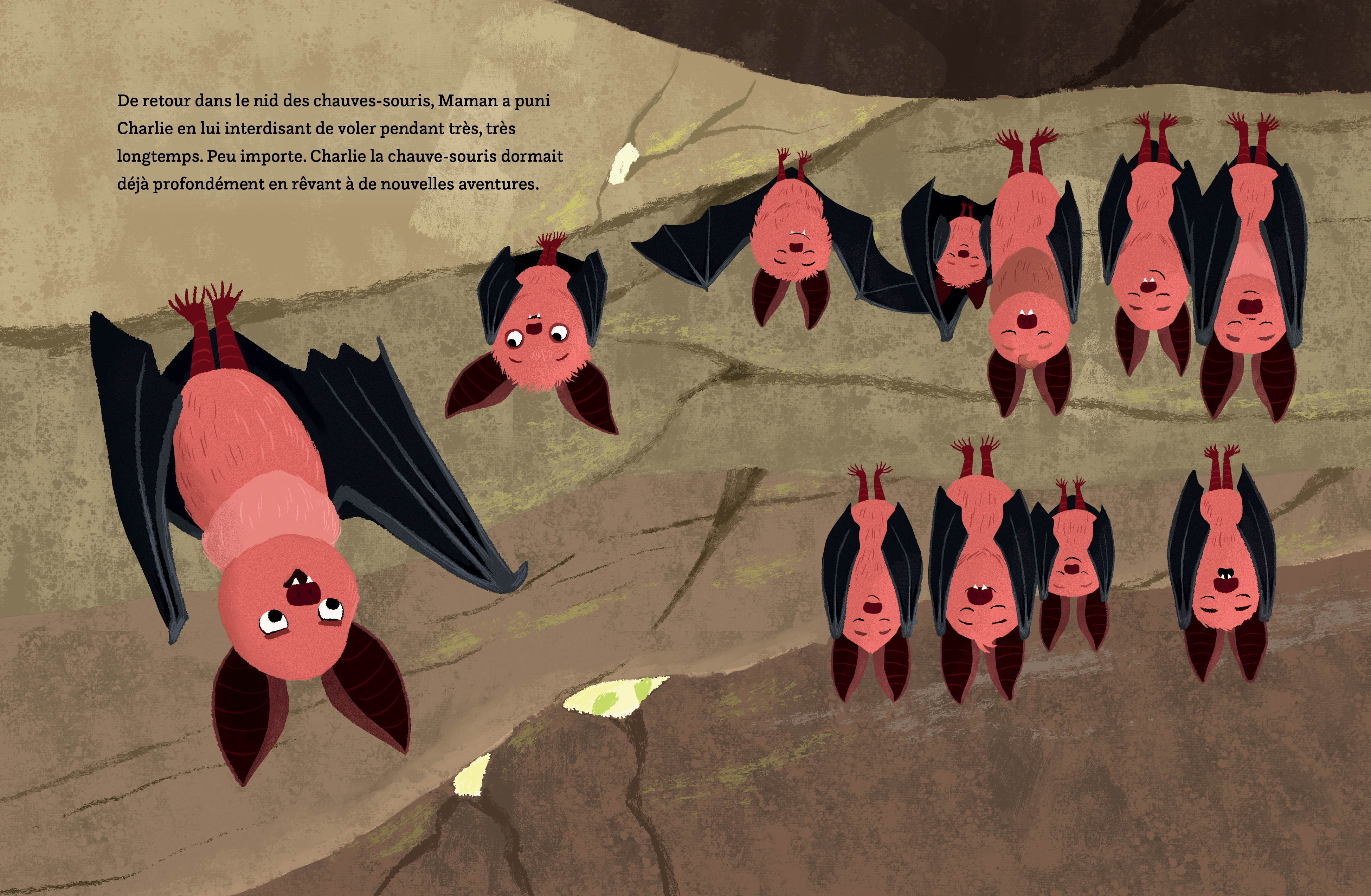 Le soleil s’est levé et il est temps de se coucher, mais Charlie la chauve-souris n’arrive pas à fermer l’œil!