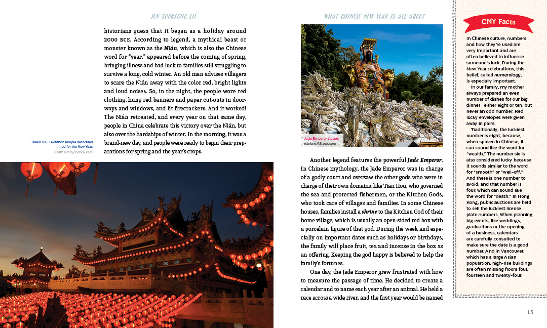 Award-winning author and broadcaster Jen Sookfong Lee recalls her childhood in Vancouver and weaves family stories into the history, traditions and evolution of Chinese New Year. Lavishly illustrated with color photographs throughout.