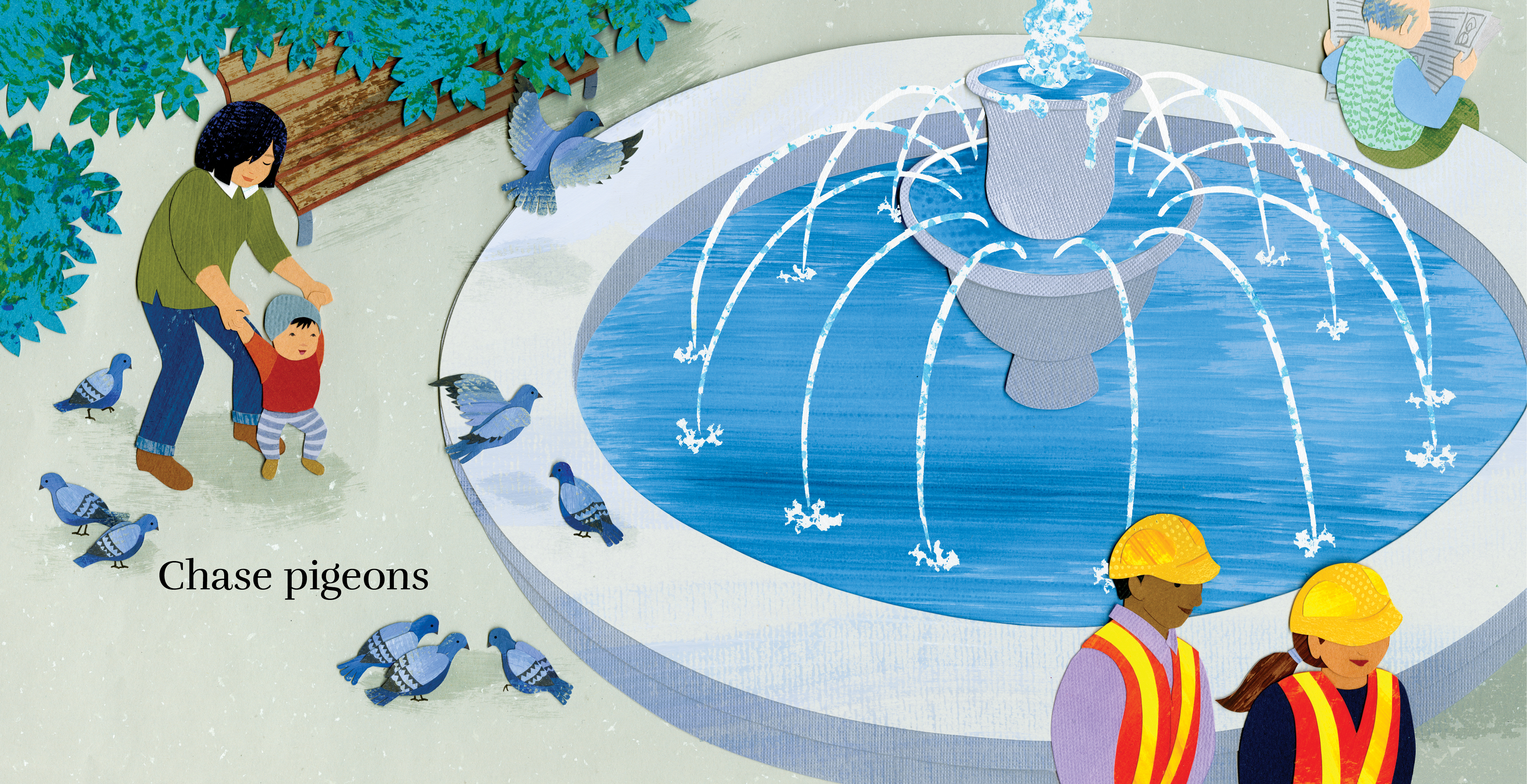 Bustling streets, lively squares and busy restaurants are baby’s playground when they are in the big city. So much to see and do as baby’s stroller navigates the crowded avenues or baby takes a break in a quiet park to blow bubbles and chase pigeons. Ashley Barron’s paper-collage illustrations are a joy to behold, bringing energy and life to this delightful board book. Rhyming verse from Laurie Elmquist takes the reader on a journey through a festive big city.