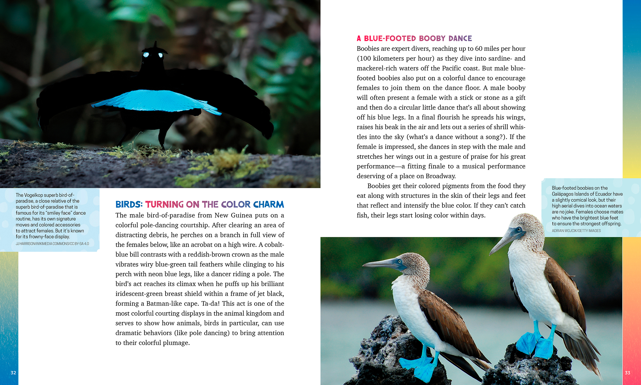 Animals like rainbow-colored parrots, red-nosed mandrills and brilliant blue peacocks use their vibrant colors to survive.