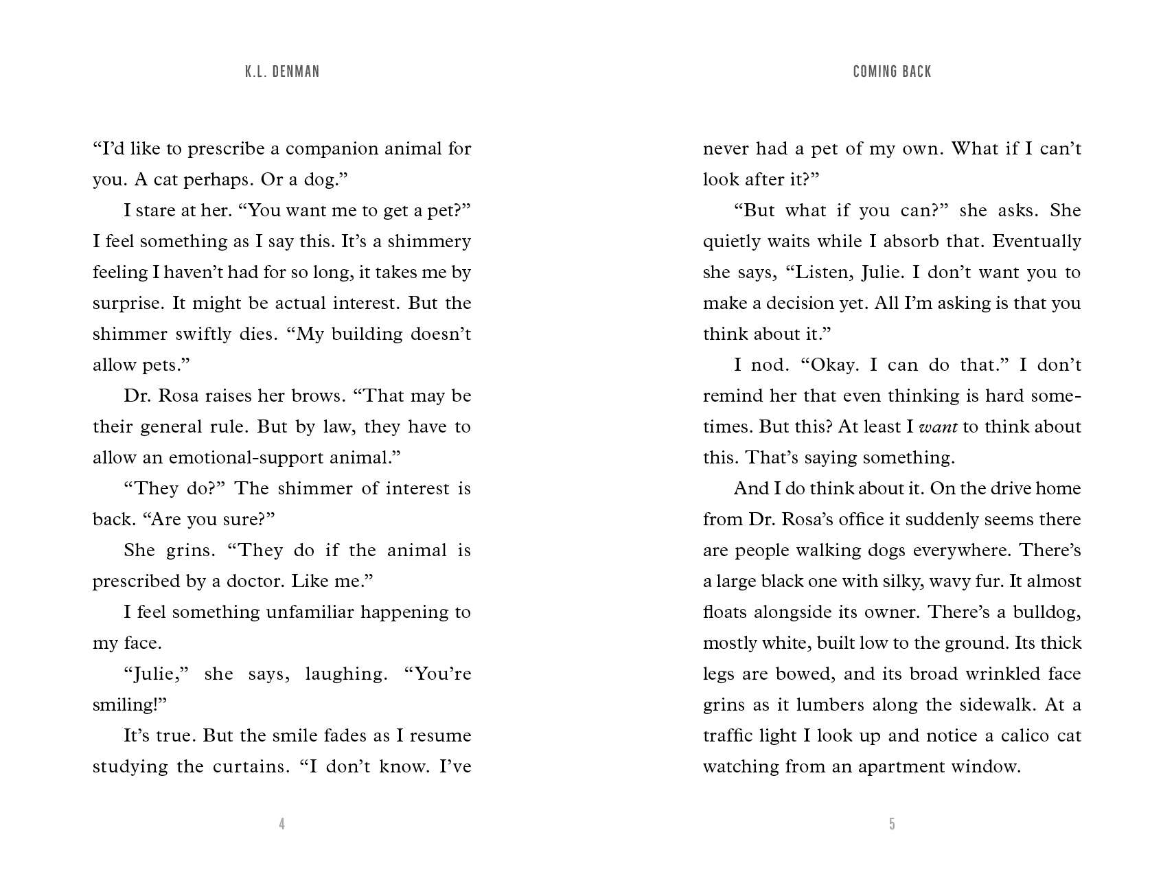He disappeared, and she is diagnosed with PTSD. Her doctor recommends a therapy animal, and Julie chooses to get a horse. Julie's experience with horses is limited, but it's empowering to finally be involved in life again, and her symptoms abate. However, she has a lot to learn, and when the riding coach gives confusing lessons, Julie is thrown off balance, both emotionally and in the saddle. The improvement she'd begun to experience with PTSD symptoms is lost, and her nightmares return. Can Julie and the horse recover and heal their broken spirits?