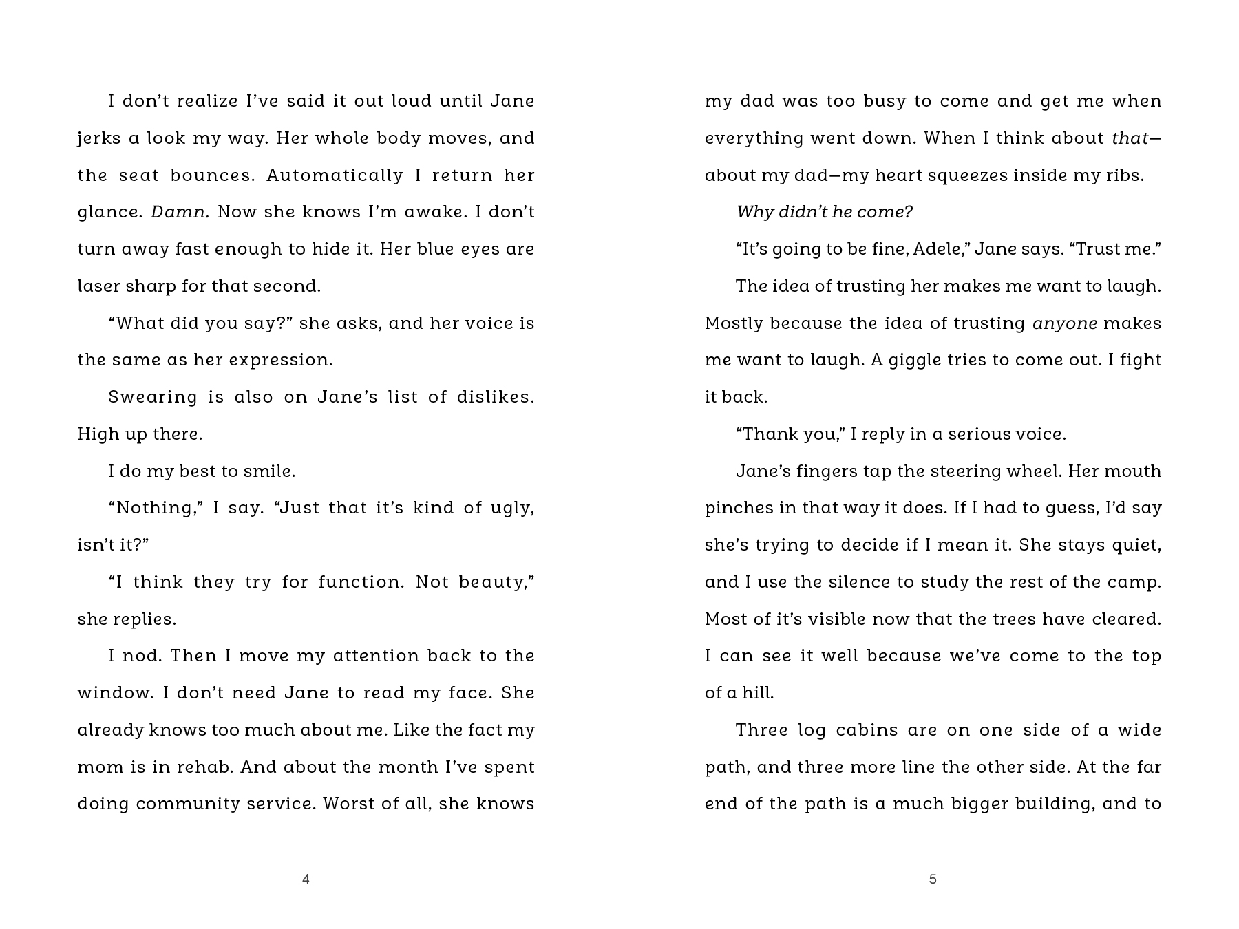 With her mother in rehab and her estranged father unable to take immediate custody, Adele's only goal at the camp is to avoid any trouble. But then Adele meets mysterious Fergus and charming Andy and soon finds herself pulled into a dangerous situation that might end up costing her life. Can Adele both listen to her heart and trust her instincts?