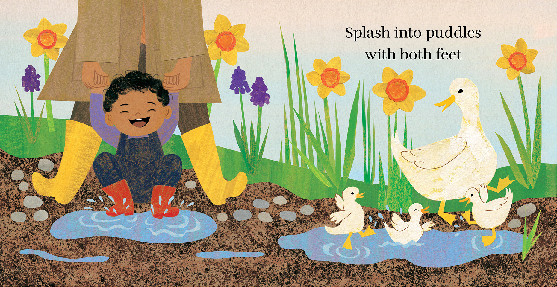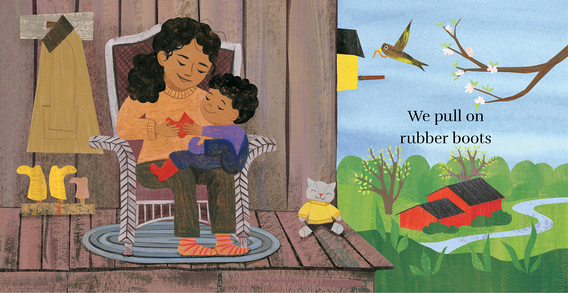 It starts when we pull on rubber boots. Then we're ready to splash in puddles, pet the cozy sheep's wool and explore the sounds and sights of the farm. When we're all done, we go inside to hang socks to dry, take a warm bubble bath and snuggle up in bed under the stars.