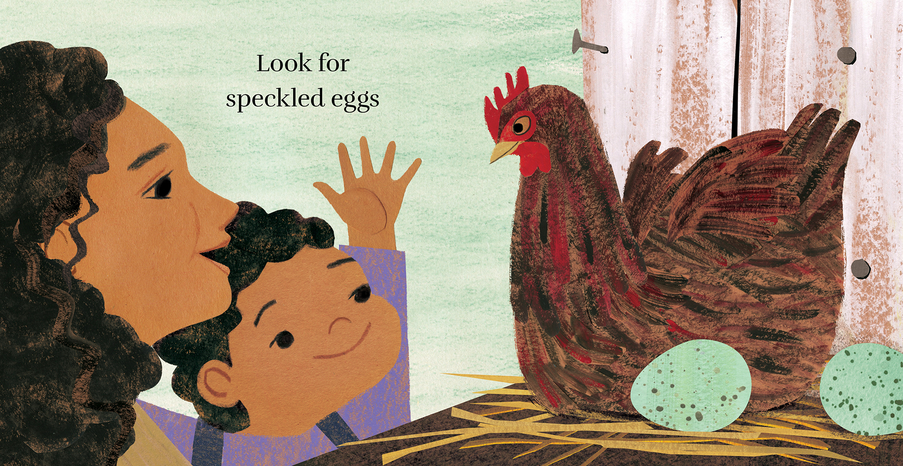 Mud puddles, speckled eggs and cozy sheep's wool...It's a day in the country for mom and baby.