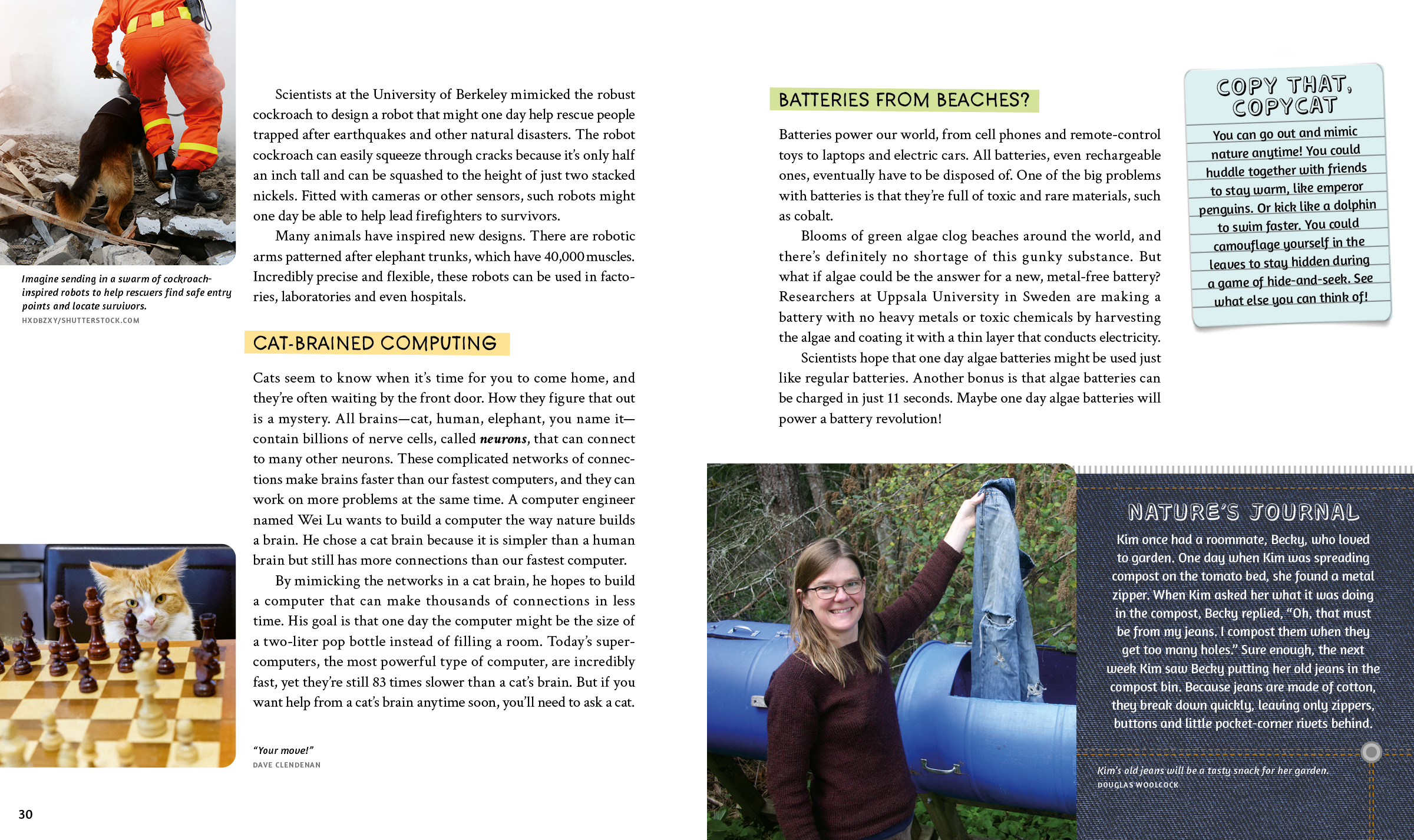 Did you know that lamps can be powered by glowing bacteria instead of electricity? That gloves designed like gecko feet let people climb straight up glass walls? Or that kids are finding ways to make compostable plastic out of banana peels? Biomimicry, the scientific term for when we learn from and copy nature, is a revolutionary way to look to nature for answers to environmental problems such as climate change.