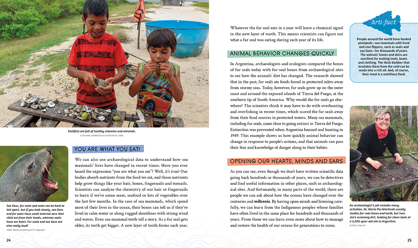 From harvesting herring eggs to hunting humpback whales, humans have had a relationship with the world's oceans for more than 100,000 years. In Dig Deep: Connecting Archaeology, Oceans and Us, young readers unearth what our ancestors left behind at archaeological sites around the world and examine how tools, campsites, fishing technologies and even garbage can show us how our ancestors lived and how they used the ocean. These discoveries can unearth clues to help keep our oceans healthier today and in the future.