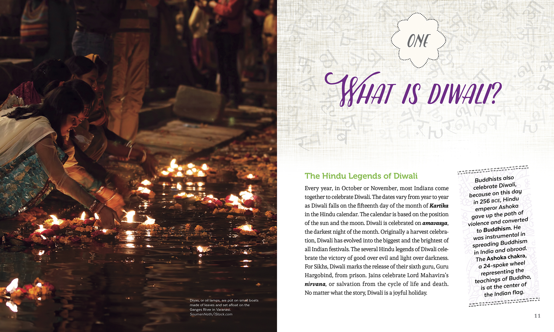 Diwali is the second book in the Orca Origins series, which examines how ancient traditions are kept alive in the modern world.