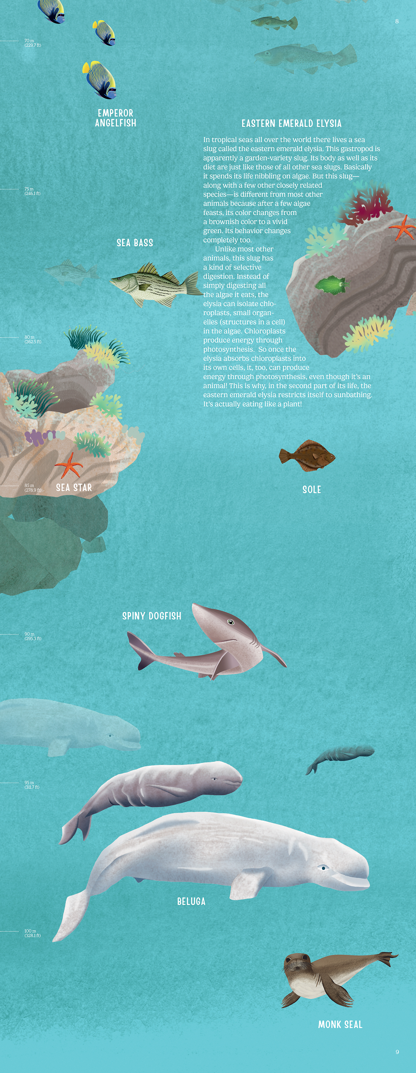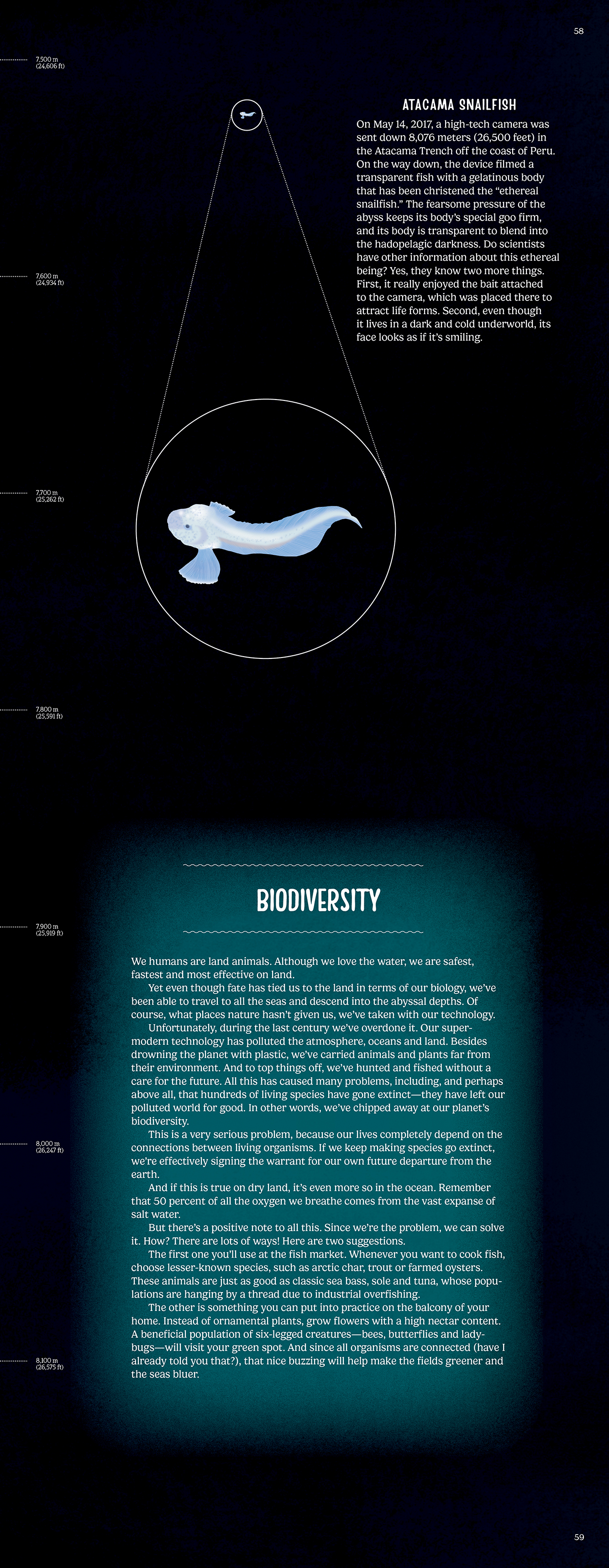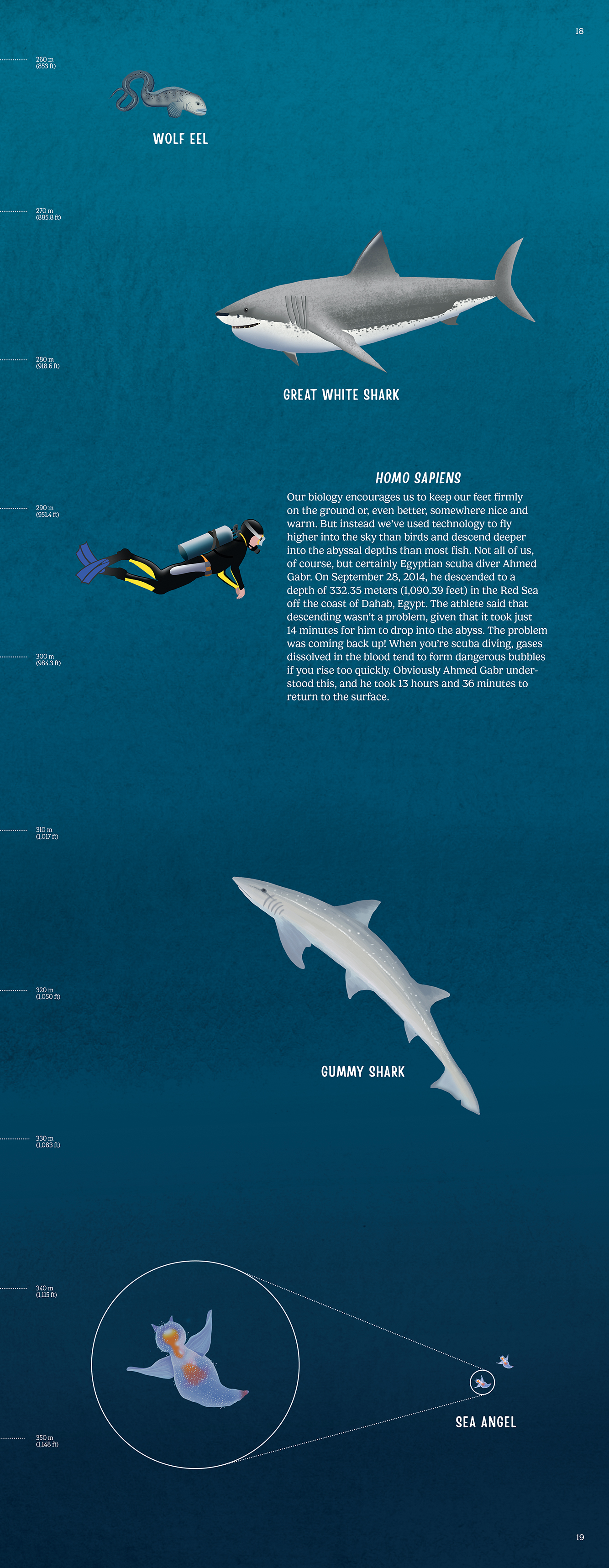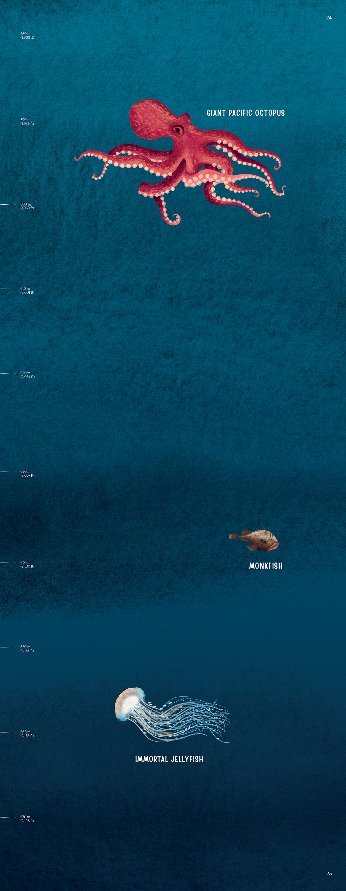 Watch as the scale maps the depth as you are transported deeper and deeper into the water, swimming among marine creatures that are so far below the surface very few humans have experienced them.