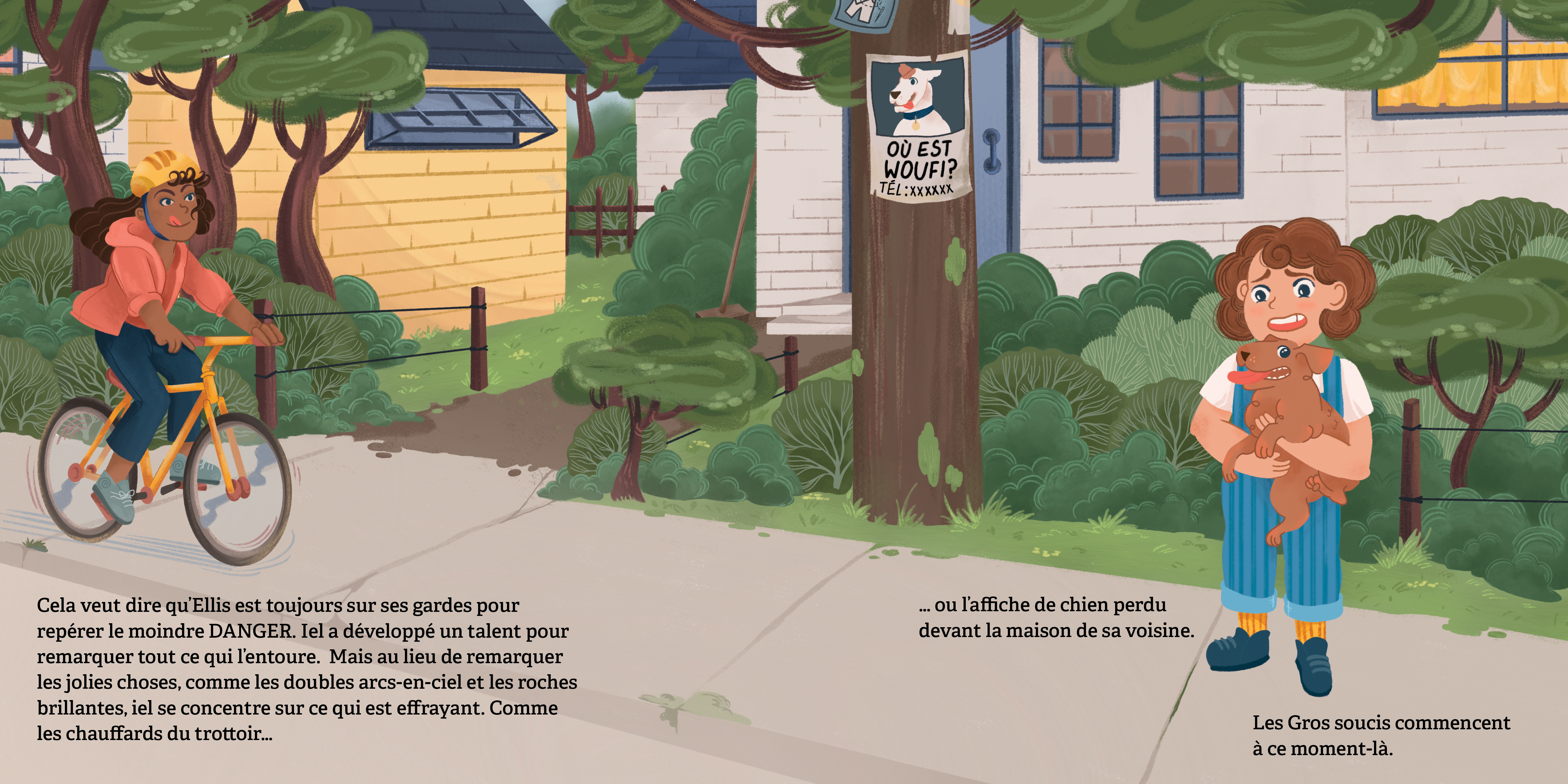 Iel a peur de parler à de nouvelles personnes. Et surtout, Ellis a peur de perdre Pistache, son petit chien. Sa liste de soucis est tellement longue qu’elle ferait trois fois le tour de sa maison si Ellis l’écrivait sur du papier.
