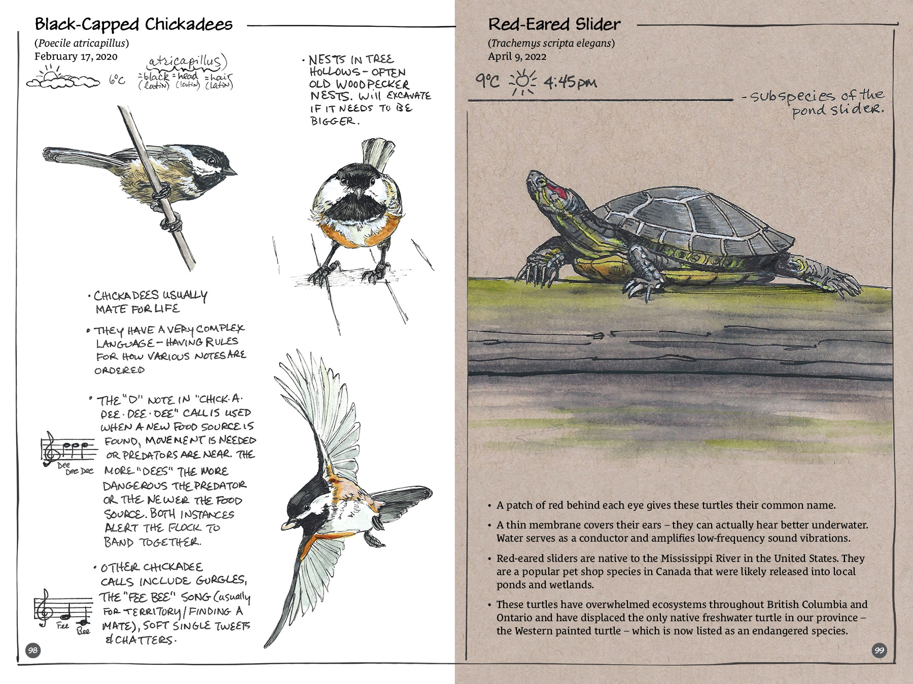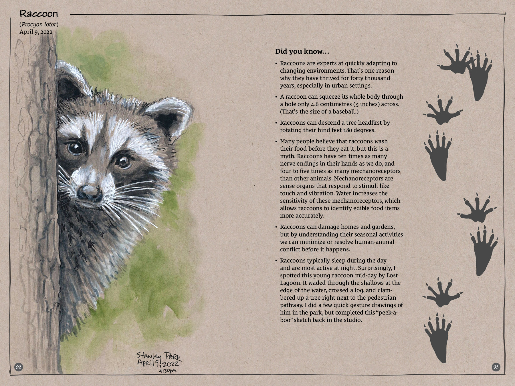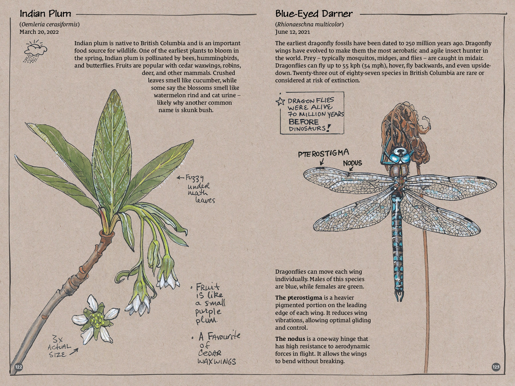 Seen through the pages of an artist’s sketchbook journal, the extraordinary biodiversity in our city comes into view. Exploring Vancouver Naturehoods takes a closer look at nature wherever you find it in our city, whether in a beautiful park, a tree-lined street, your backyard, or a plant poking through a crack in the sidewalk. These are Vancouver’s “naturehoods” – any greenspace in your neighbourhood no matter how big or how small. This local artist uses her sketchbook as an opportunity to discover and explore nature throughout our city and as a portal to connect with community on many levels."