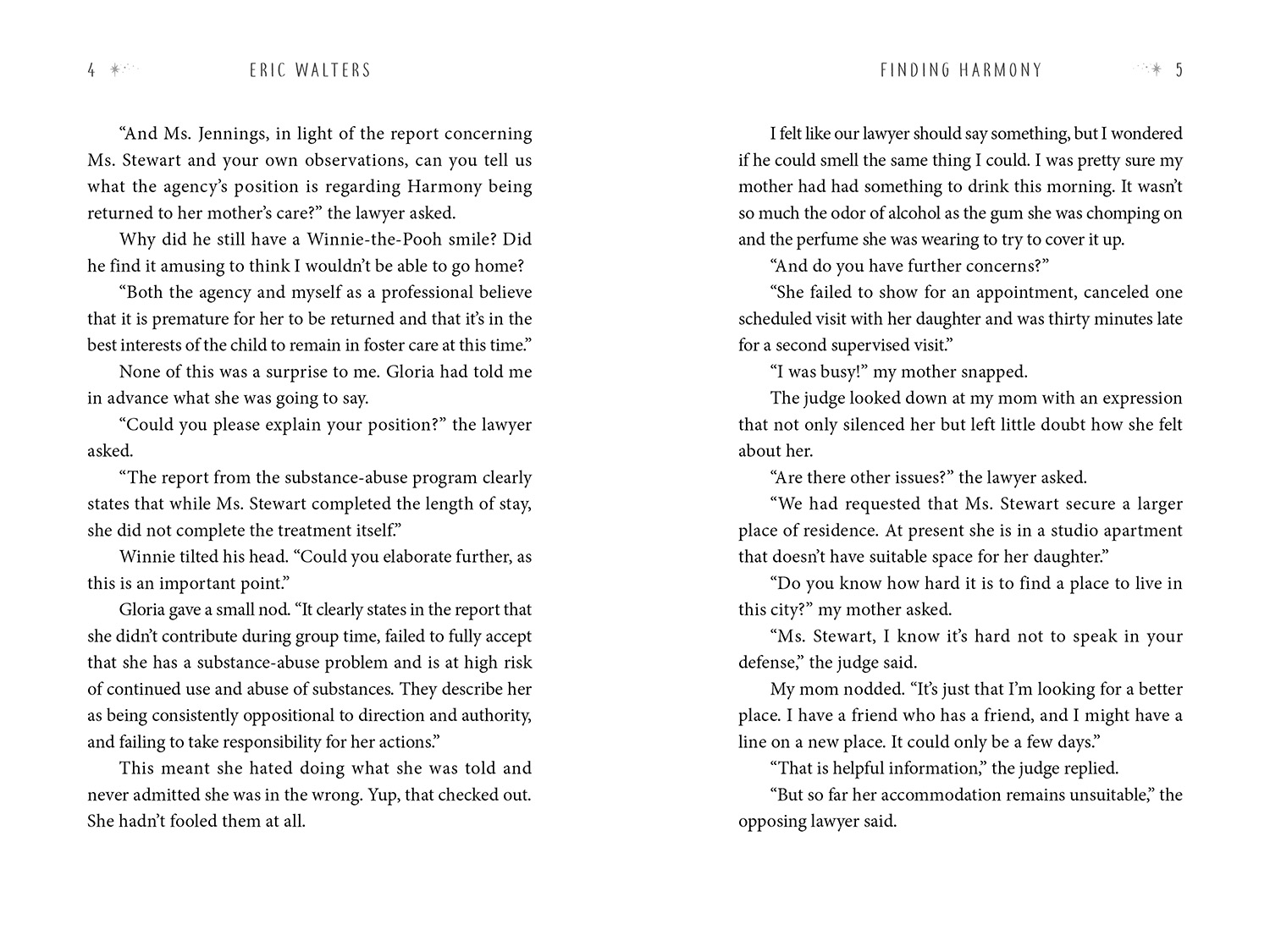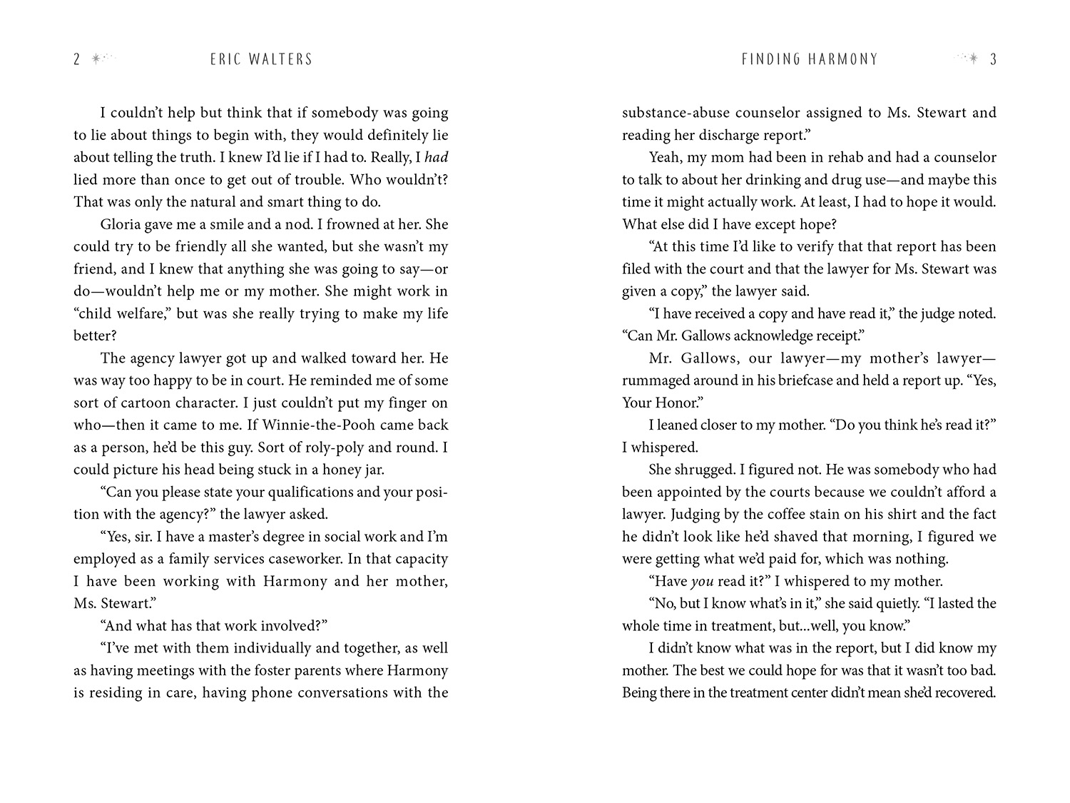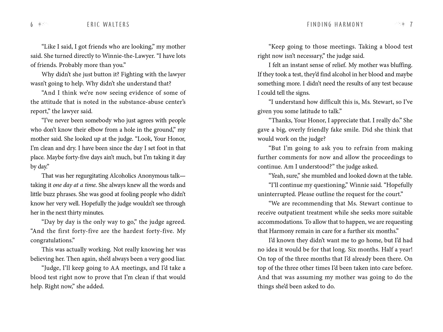 After months living in a foster home (again), Harmony convinces a judge that she can move back in with her mother. Her mom even finds an apartment that the social worker, Gloria, can't find fault with. But now Harmony has an even bigger battle ahead—trying to keep her mom on the straight and narrow, or at least keep Gloria from finding out when she slips. Which she does. A lot. Often left to fend for herself, Harmony finds an ally in Mr. Khaled, the owner of the convenience store across the street. He helps Harmony out with food in exchange for some part-time work. And at school, her principal seems to be on her side. Even so, it feels like Harmony’s life is always one step from falling apart, and she can't really trust anyone.