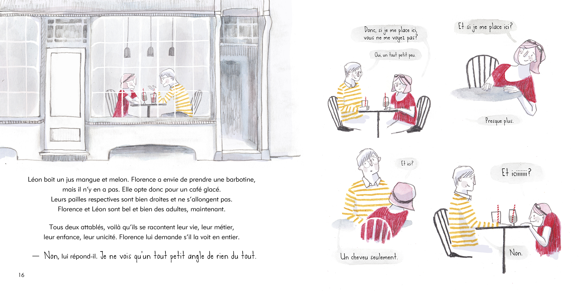 Florence a un problème aux poumons, mais enseigne la natation ; pour elle, c’est toujours comme si elle respirait dans une paille. Léon a un problème aux yeux et est agent d’assurance ; pour lui, c’est toujours comme s’il regardait par le trou d’une paille. Leur rencontre chamboulera leurs vies. Et si les différences pouvaient devenir une force ? Et si l’amour pouvait naître au bout d’une paille ?