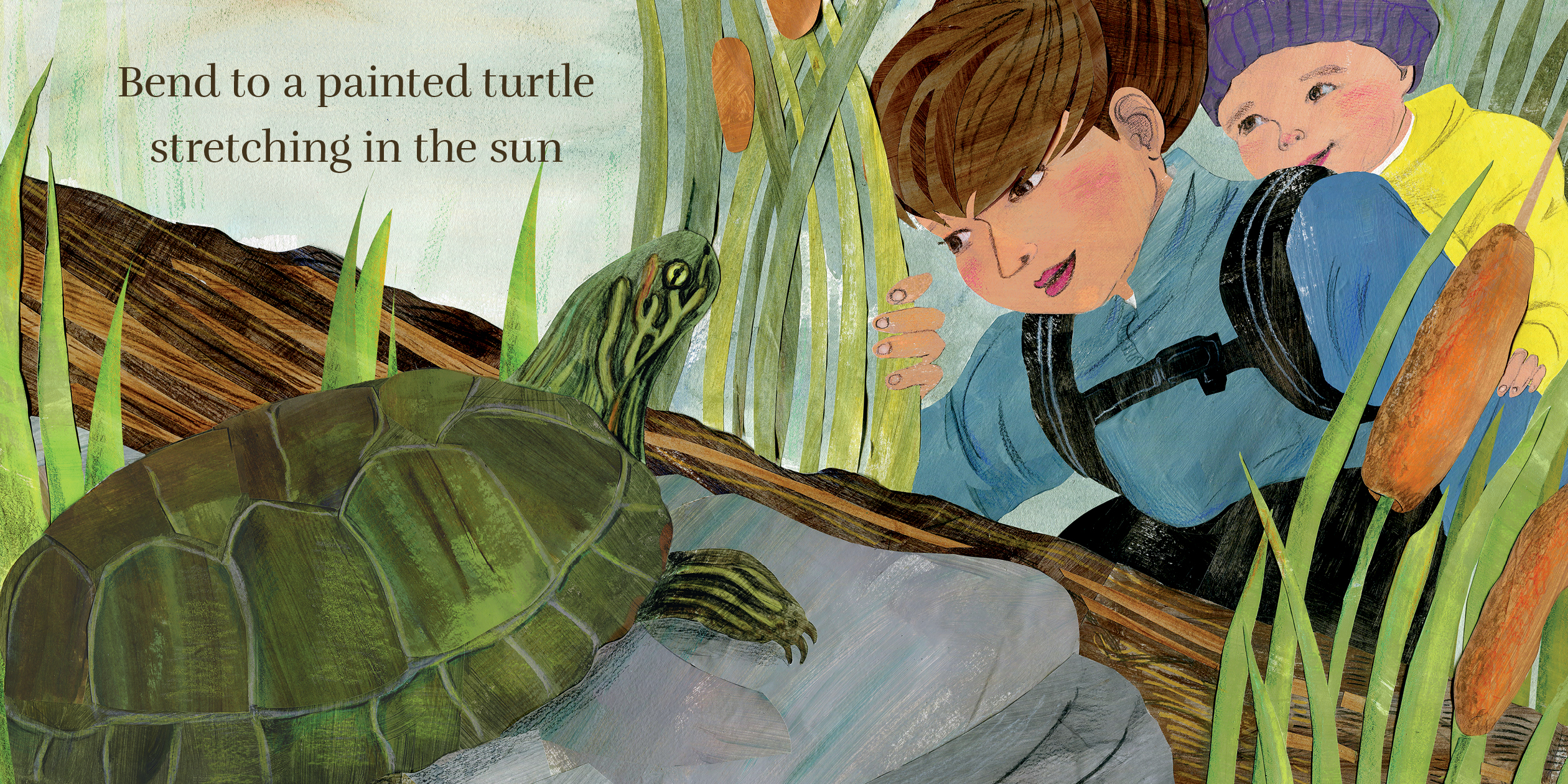 Leaves rustle overhead, and a turtle stretches toward the sun. Everything shimmers with light, including the jeweled wings of a dragonfly and the star-shaped lilies. This delightful board book takes the reader on a hike accented by the soft sound of footsteps on the trail and grounded by the rhythmic rocking of mother and baby moving through the forest. Travel along on their serene journey with Laurie Elmquist's lyrical verse and Shantala Robinson's warmly painted collages. A beautiful book that will be treasured by anyone who loves the outdoors.