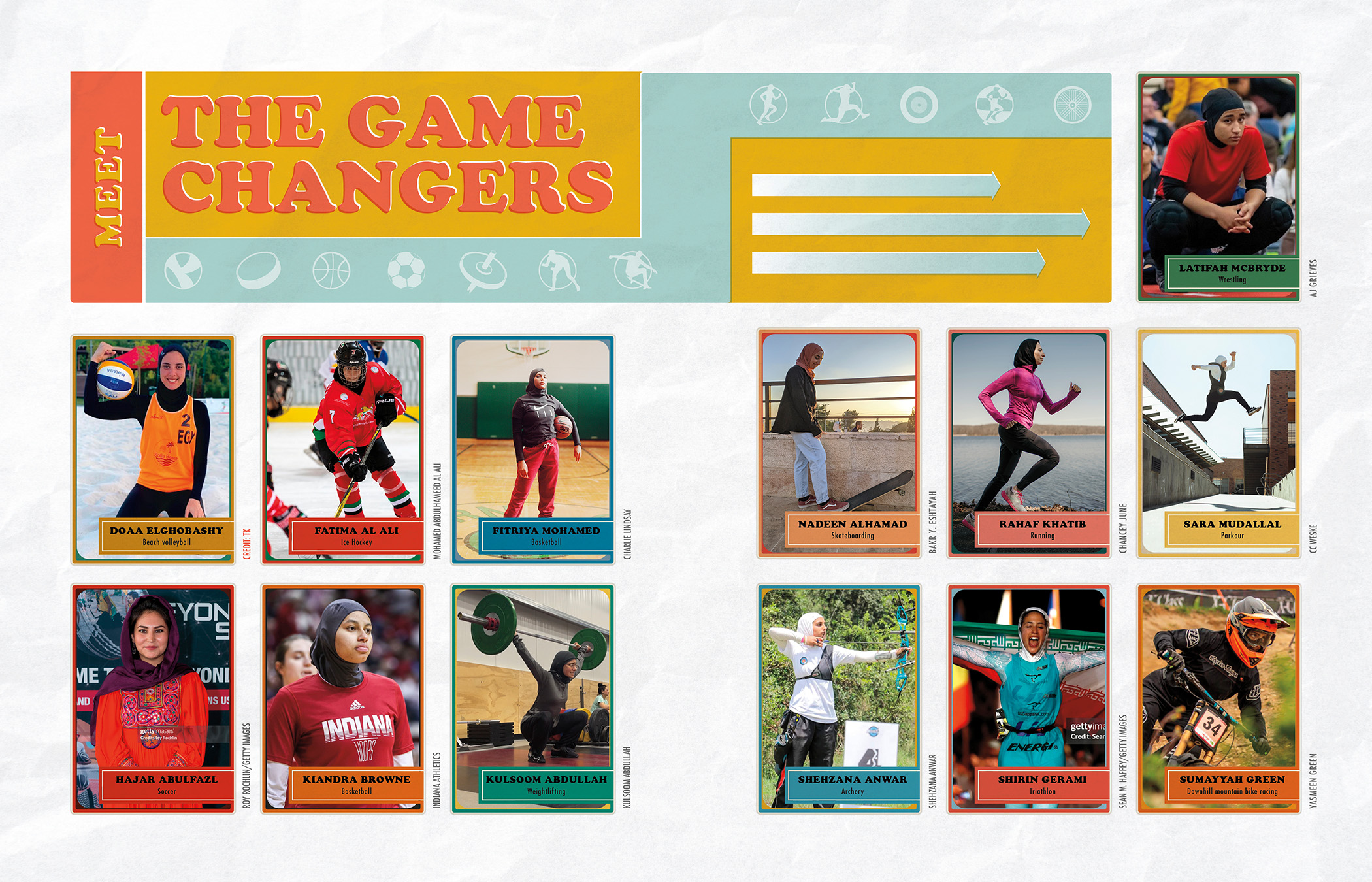 Discover the stories of Egyptian beach volleyball player Doaa Elghobashy, UAE hockey player Fatima Al Ali, Afghani soccer player Hajar Abulfazl and Syrian-American runner Rahaf Khatib, among many others. Game Changers shows the next generation of Muslim girls that they don't have to choose between following their religion and following their dreams.