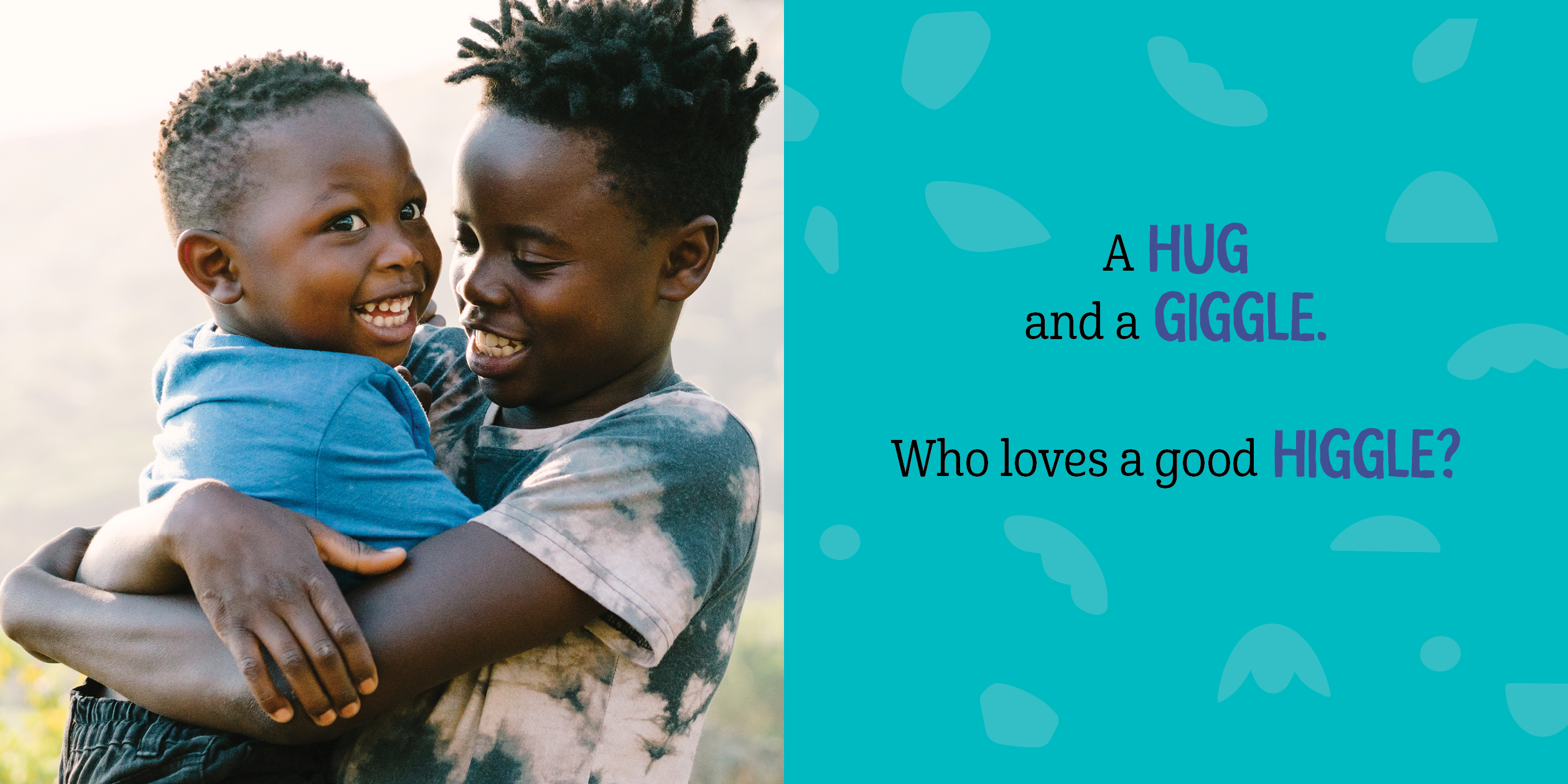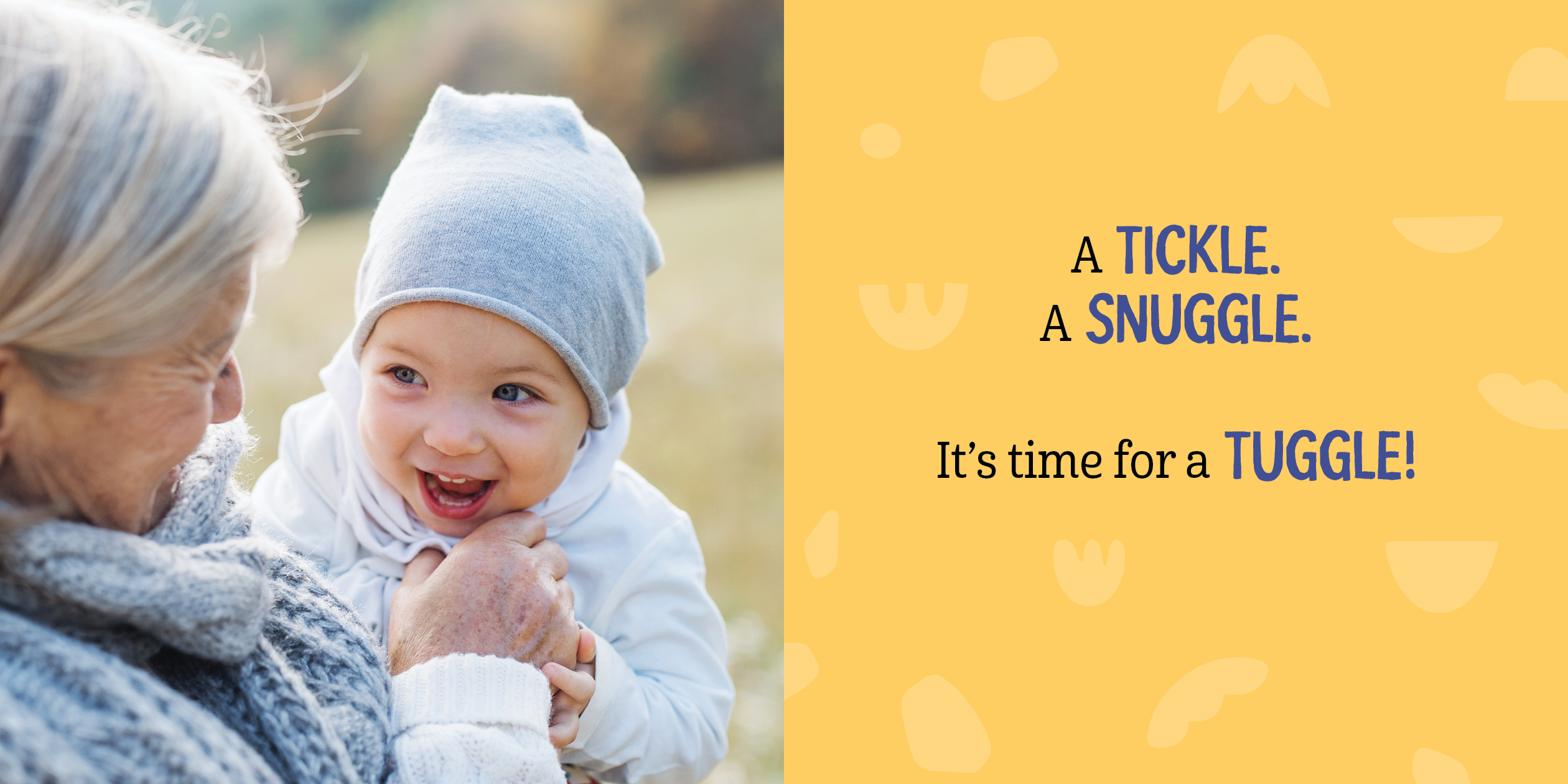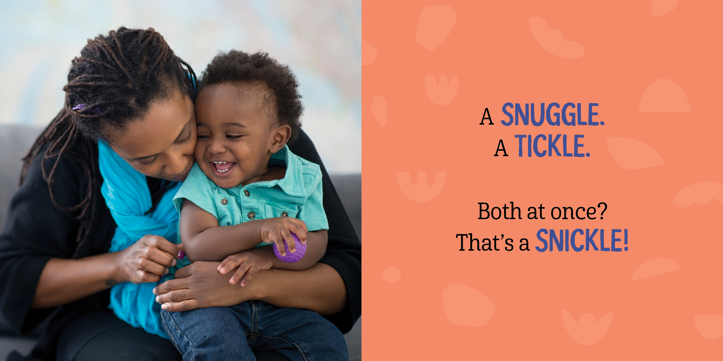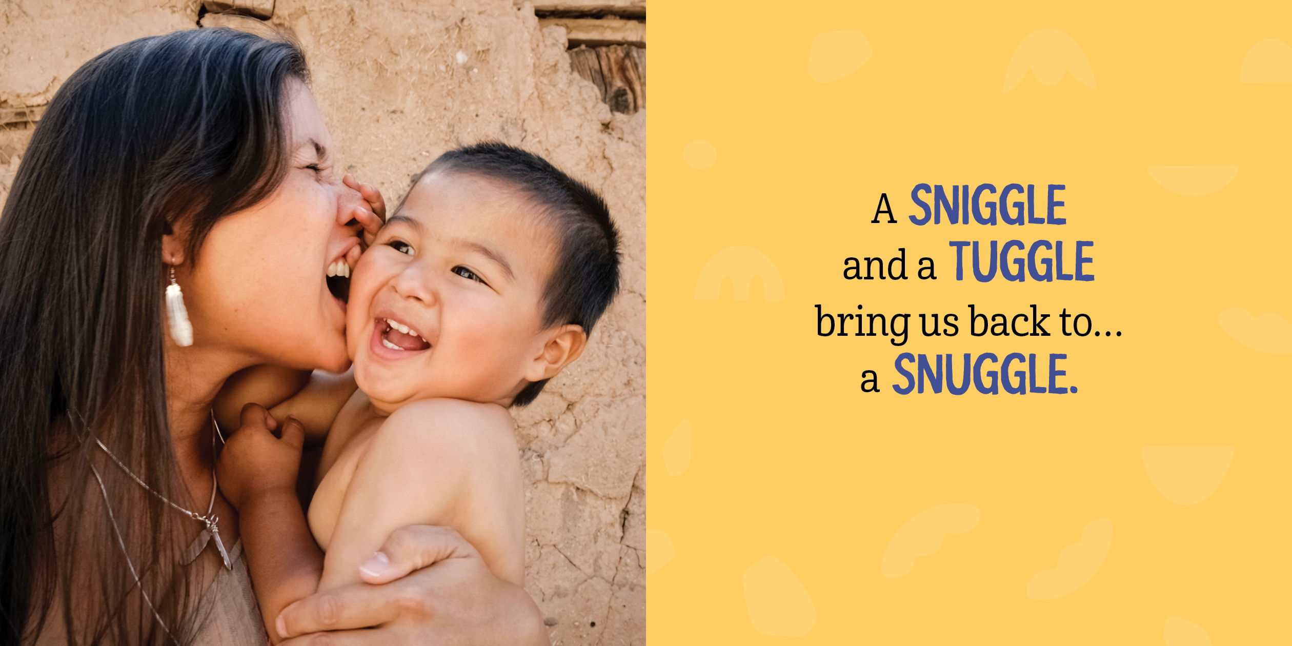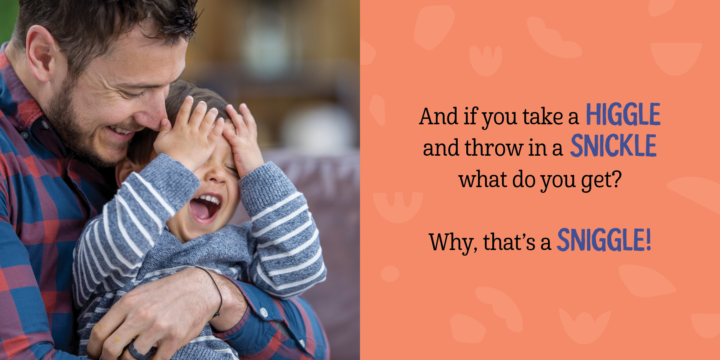 This delightfully playful board book will have readers of all ages chuckling as they read fabricated words of affection. A tickle plus a snuggle makes for a tuggle while a snickle and a higgle gets you a sniggle. Accented by adorable photos of beaming babies, this silly board book takes the reader on an engaging romp through repeated rhyming sounds landing right back at the best feeling ever—a snuggle with someone you love.