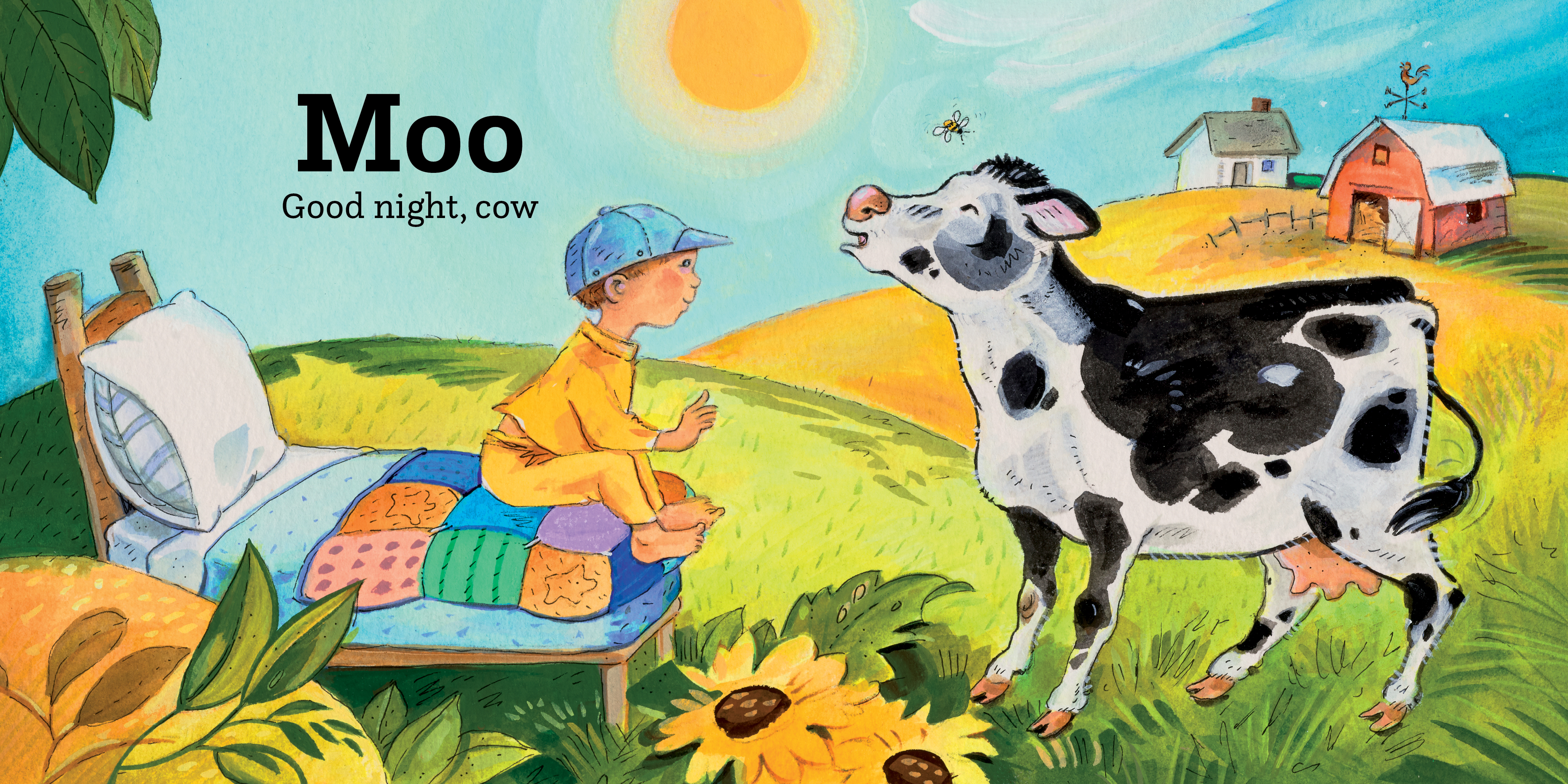 A young child imagines all of his animal friends have come to life as he says good night to each of them before tucking in to sleep. “Moo,” says the cow. “Good night, cow,” says Noah. With hints on each page of the animal featured on the following page, the simple, repetitive text will encourage your little reader to wish their own stuffed animals sweet dreams as they snuggle down for the evening.