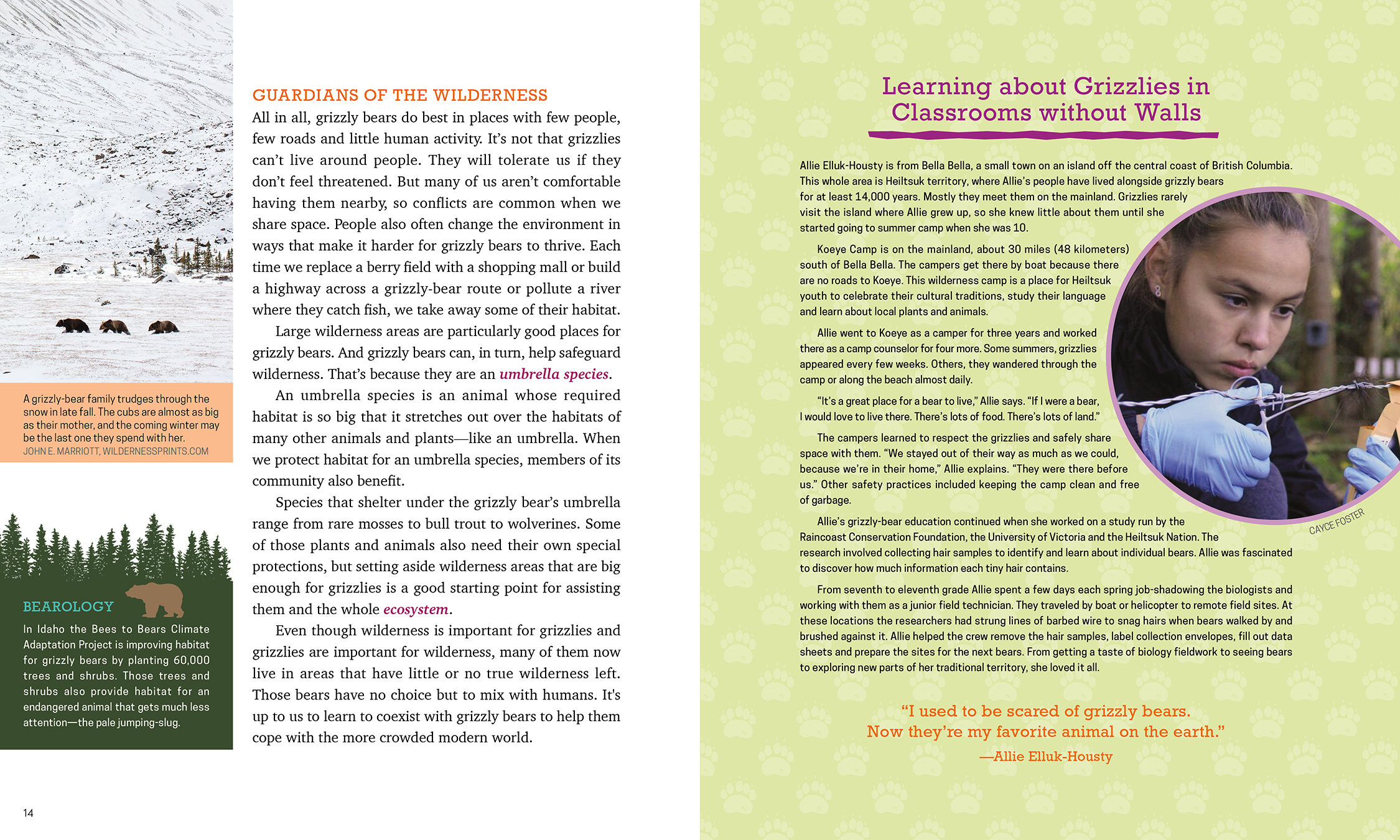 They once roamed across half the continent, but today the grizzly population has declined at an alarming rate and it is incredibly difficult to rebuild those numbers, especially in places with a lot of people. Yet grizzlies are key members of their ecological communities and a powerful symbol of wilderness. Filled with facts and richly illustrated with photos, Grizzly Bears: Guardians of the Wilderness explores the biology of grizzlies and the vital ecological role these bears play, and it asks readers to consider what it takes to share the land with them. Learn from conservationists, scientists, Indigenous Peoples and young people who are working to ensure that grizzlies will be with us forever.