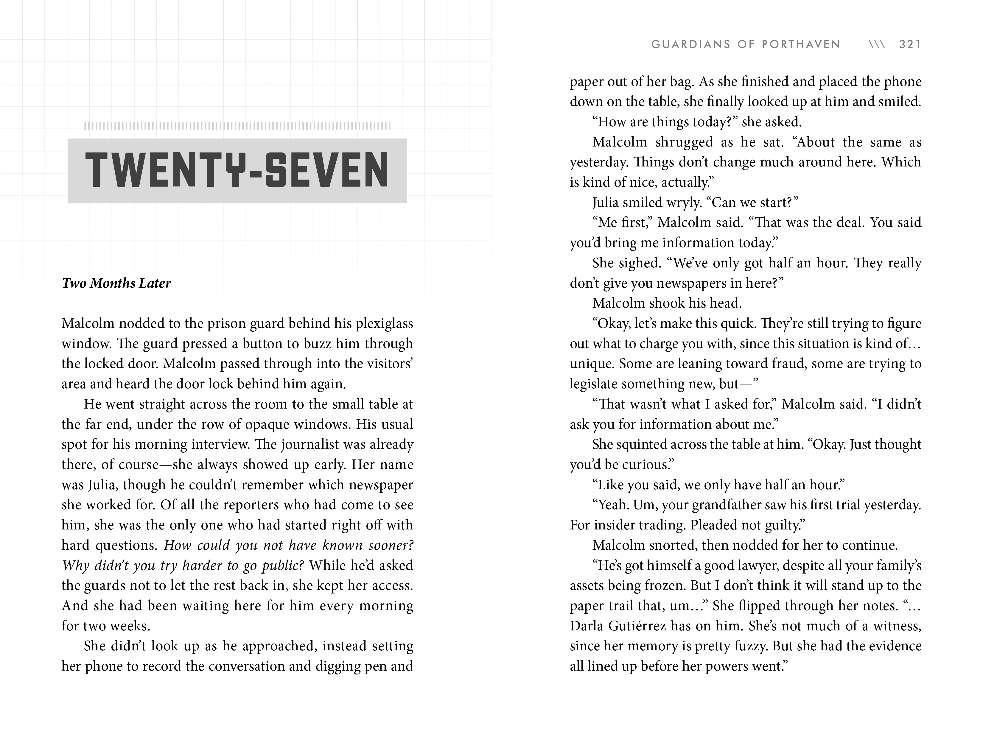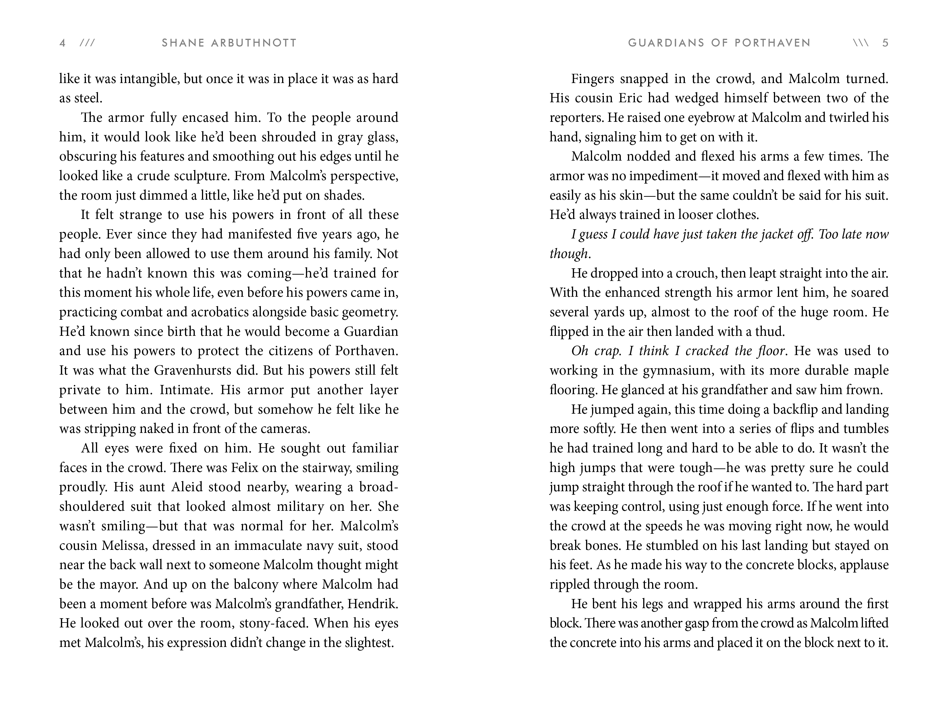 The Guardians are tasked with defending the city of Porthaven, and his family is the only one to possess the superpowers necessary to battle the frequent alien invasions of robotic klek. But power has brought the Gravenhursts more than just responsibility—it has also brought them fame and wealth. When Malcolm meets some teens living and working in secret, he learns that underneath their heroic facade, the Gravenhurst family is hiding some very dark secrets. With the threat of annihilation on the horizon, soon Malcolm must choose between family loyalty and doing the right thing.