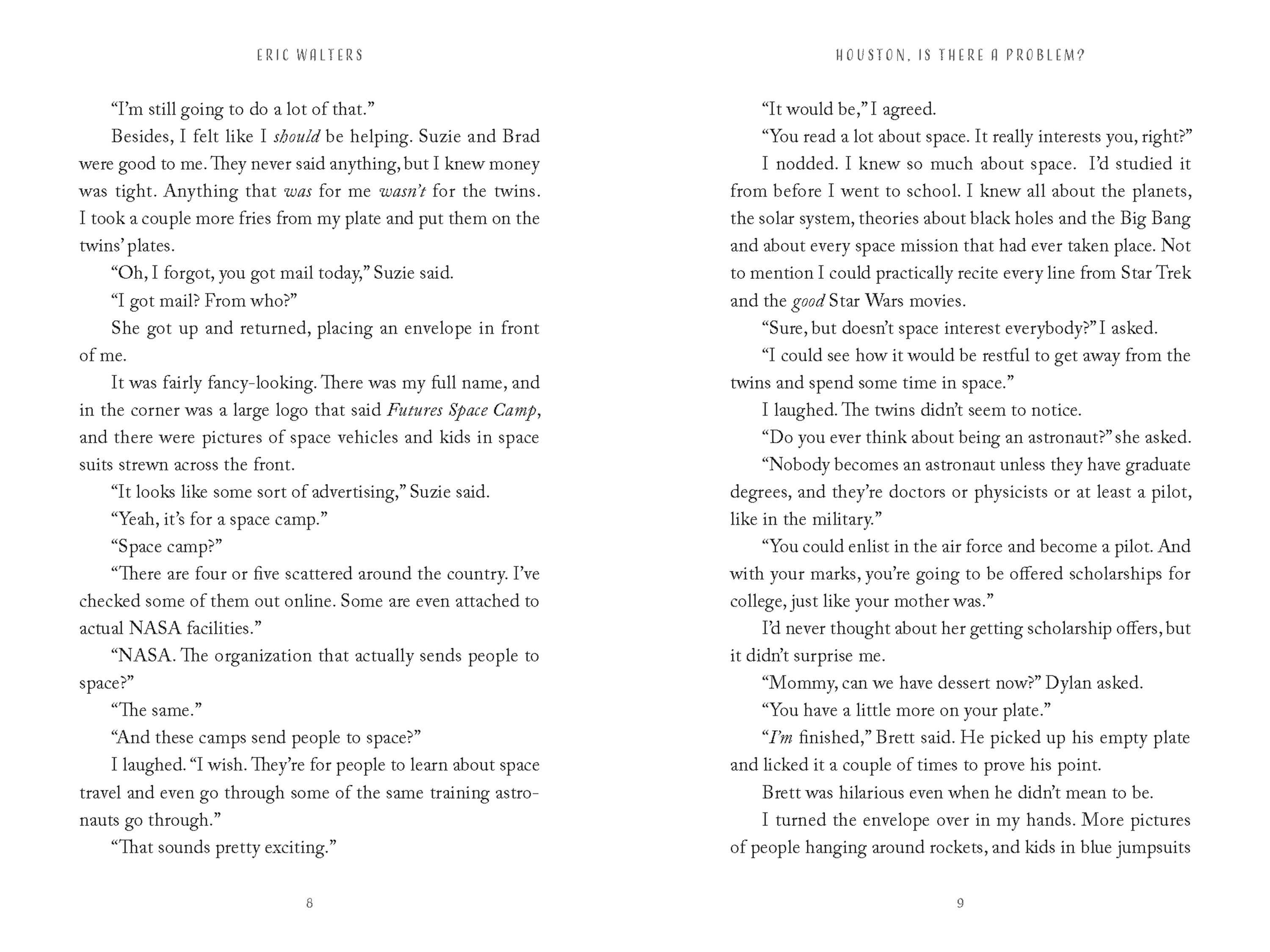 So no one is surprised when he earns a scholarship to attend a prestigious NASA space camp. At the training facility he immediately bonds with his new team, including a girl named Teal. He also clashes with a girl on a rival team named Ashley, who matches or beats him in every exercise. The three of them impress the directors so much they are invited to join a top-secret research project that studies how space travel affects people of different ages. But only two of them will actually be going into space. Houston will do whatever it takes to make sure he's picked.
