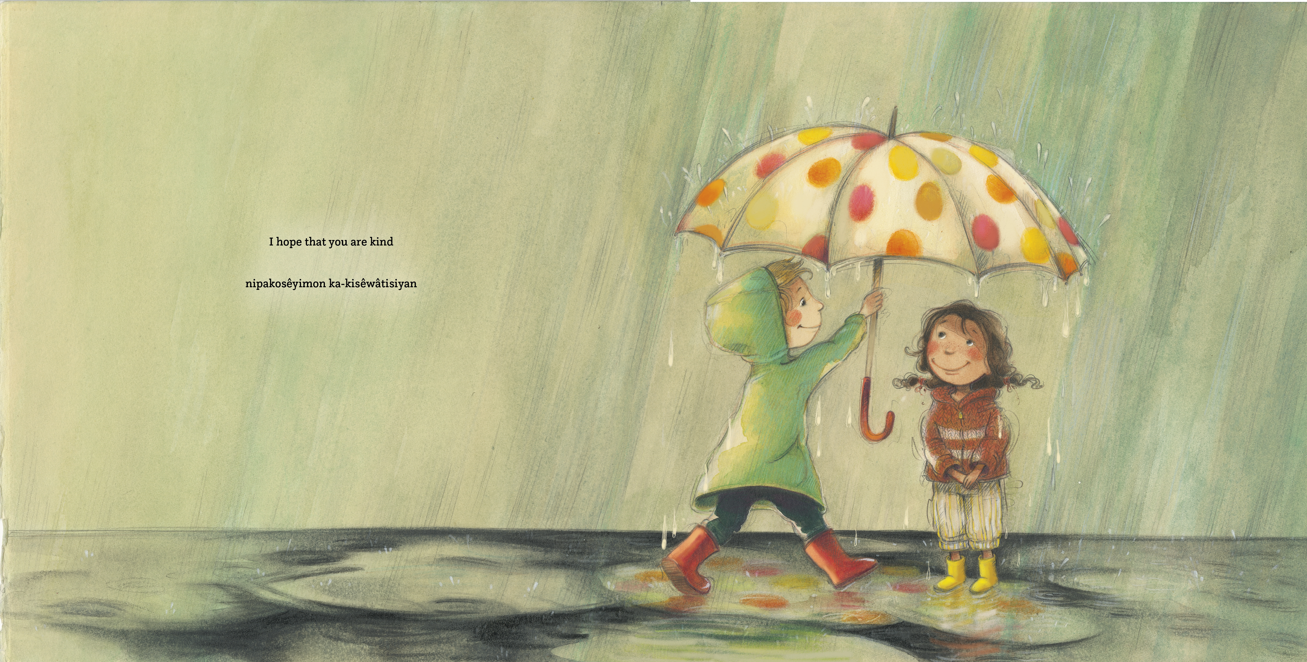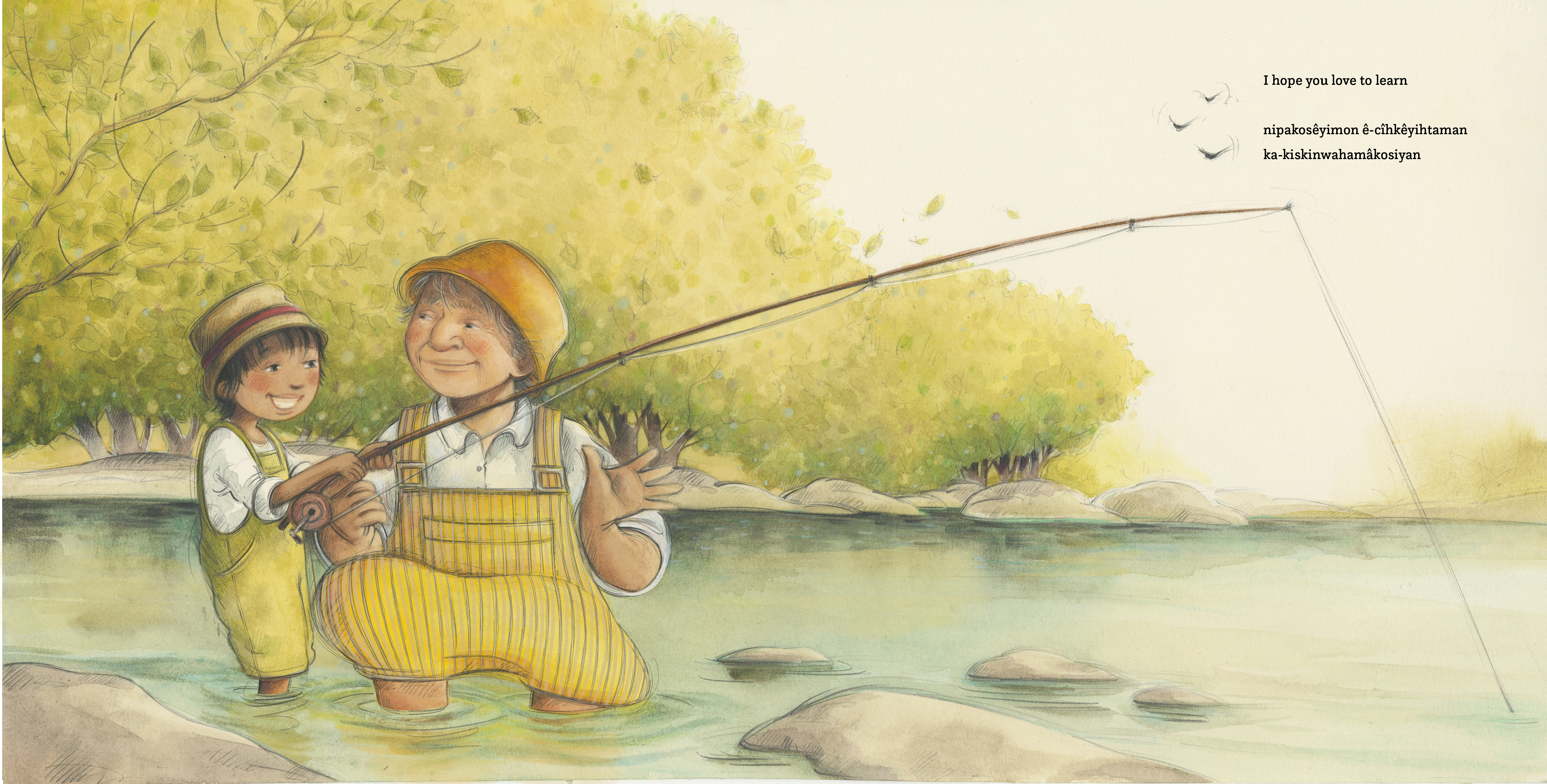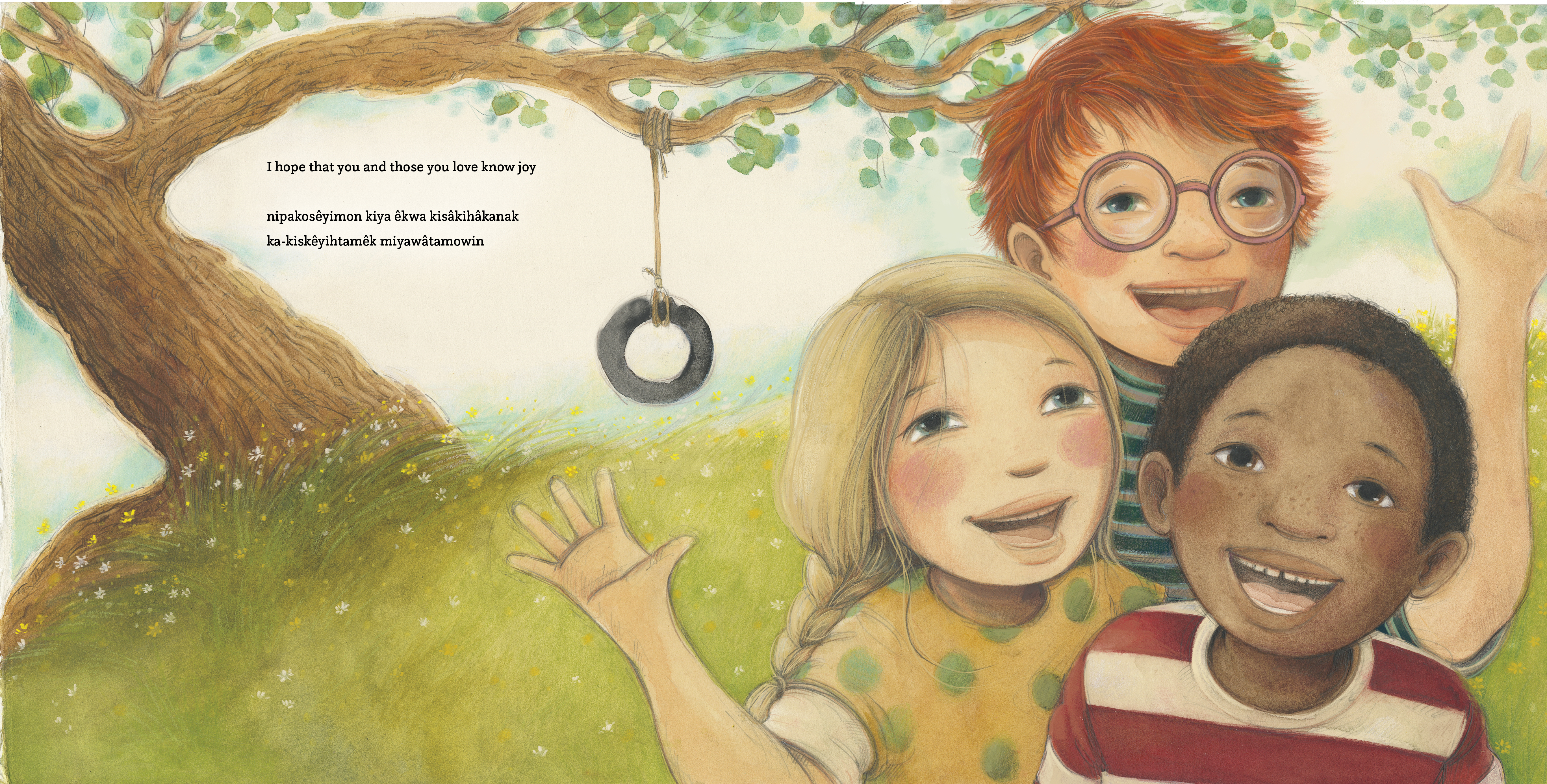 This bilingual book includes full text in both English and Plains Cree.