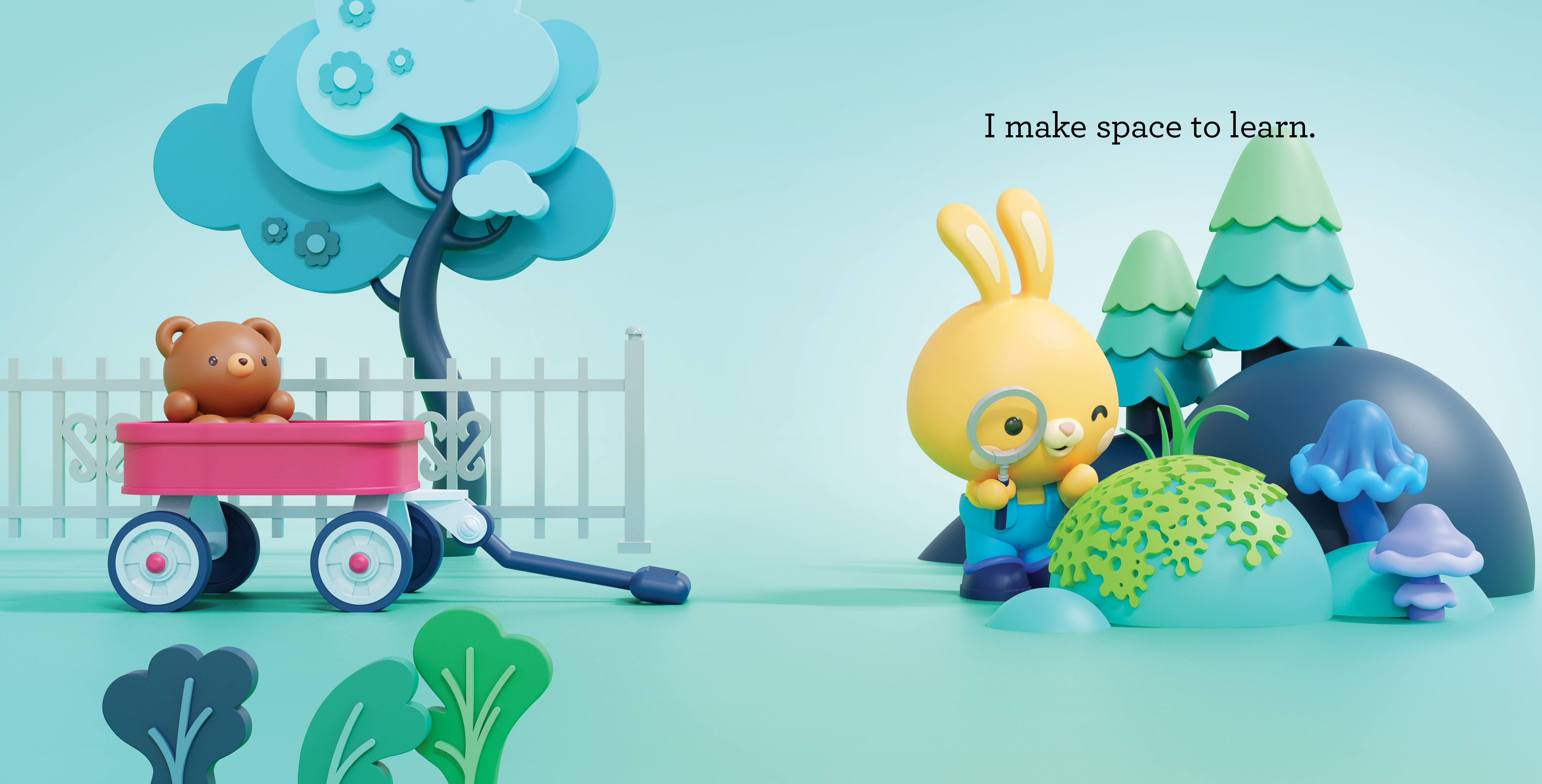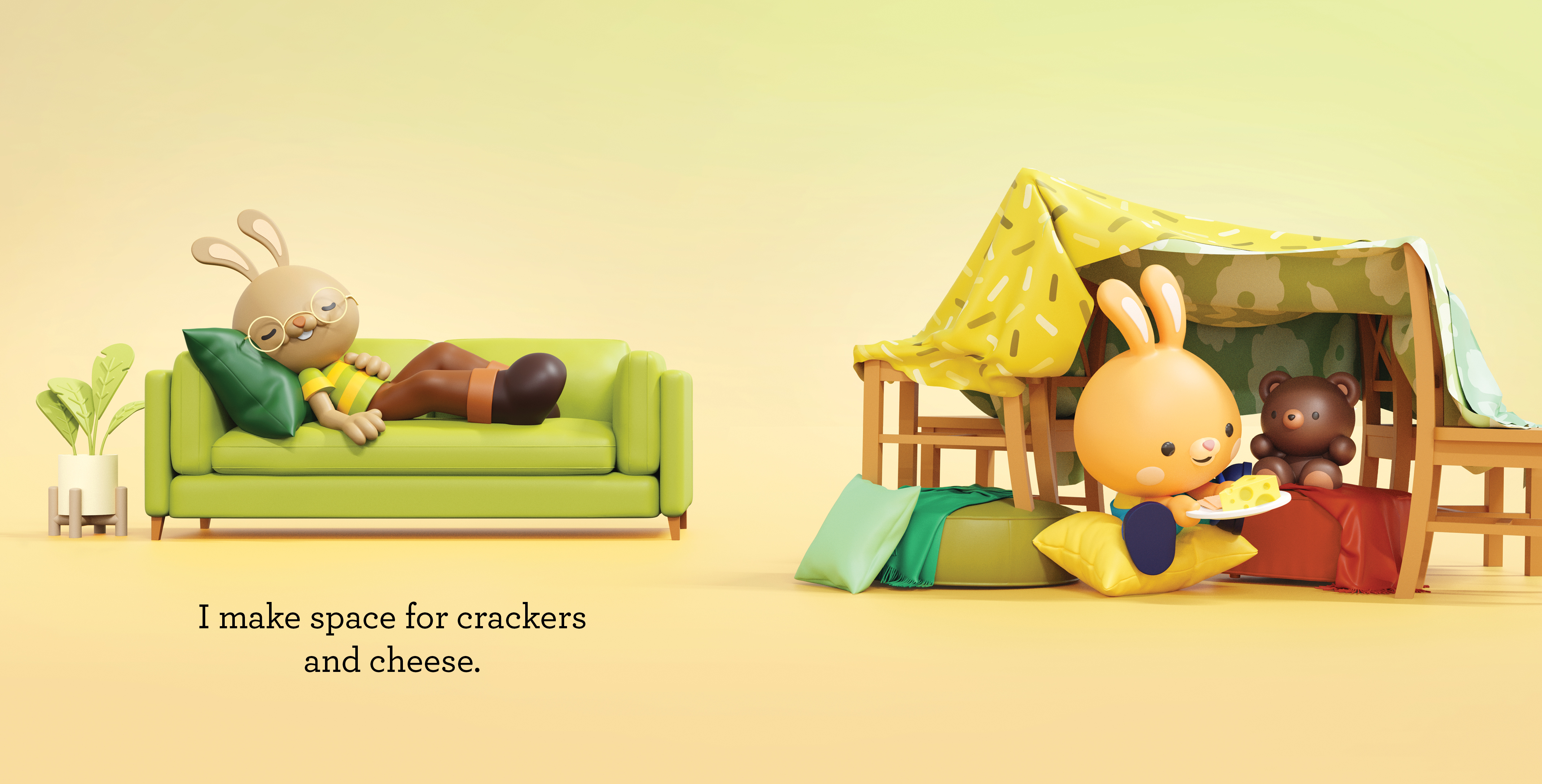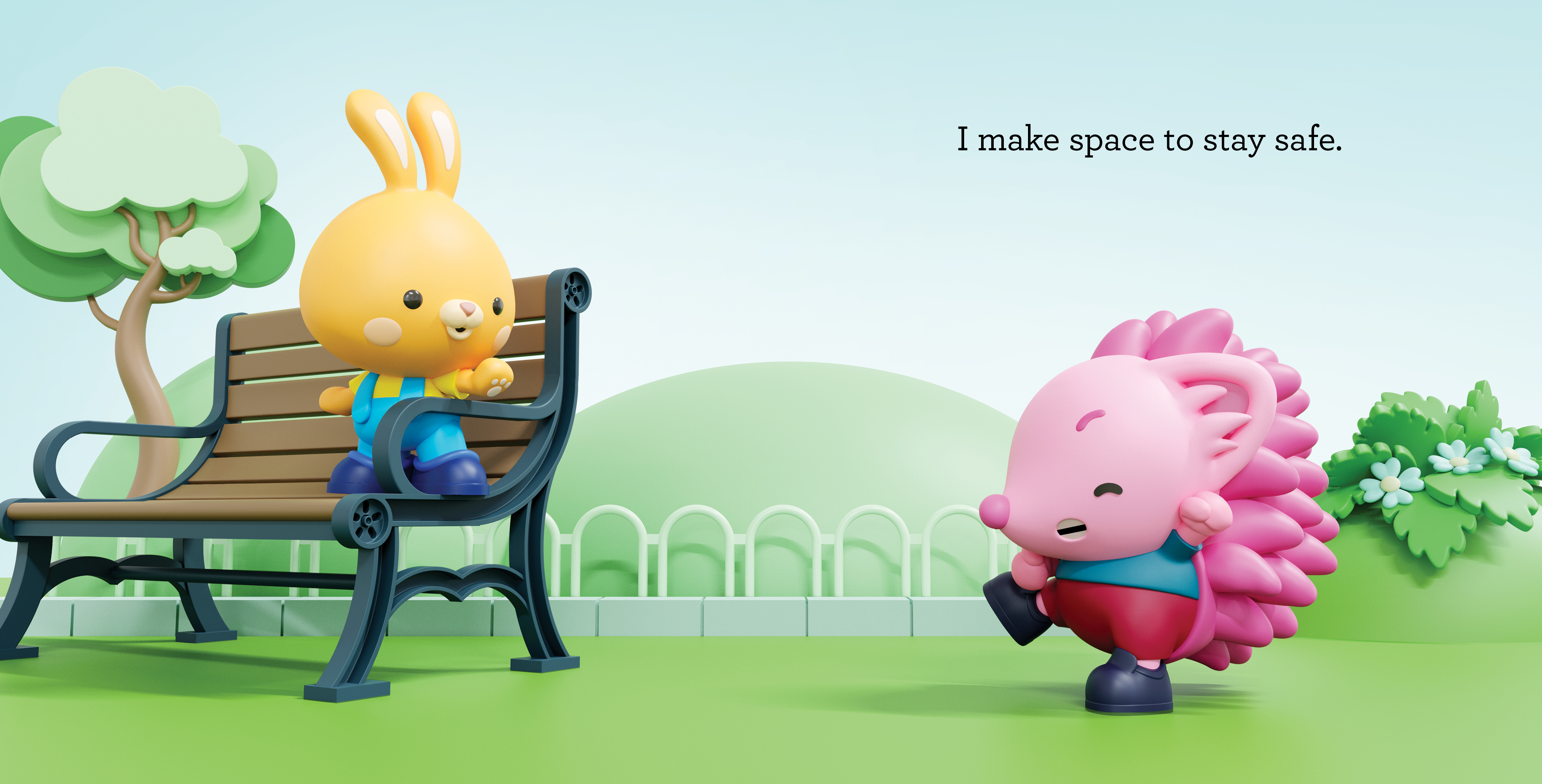 This uniquely illustrated board book follows a young bunny through their day while they make space for themselves and others, delivering a straightforward but impactful message about boundaries and consent.