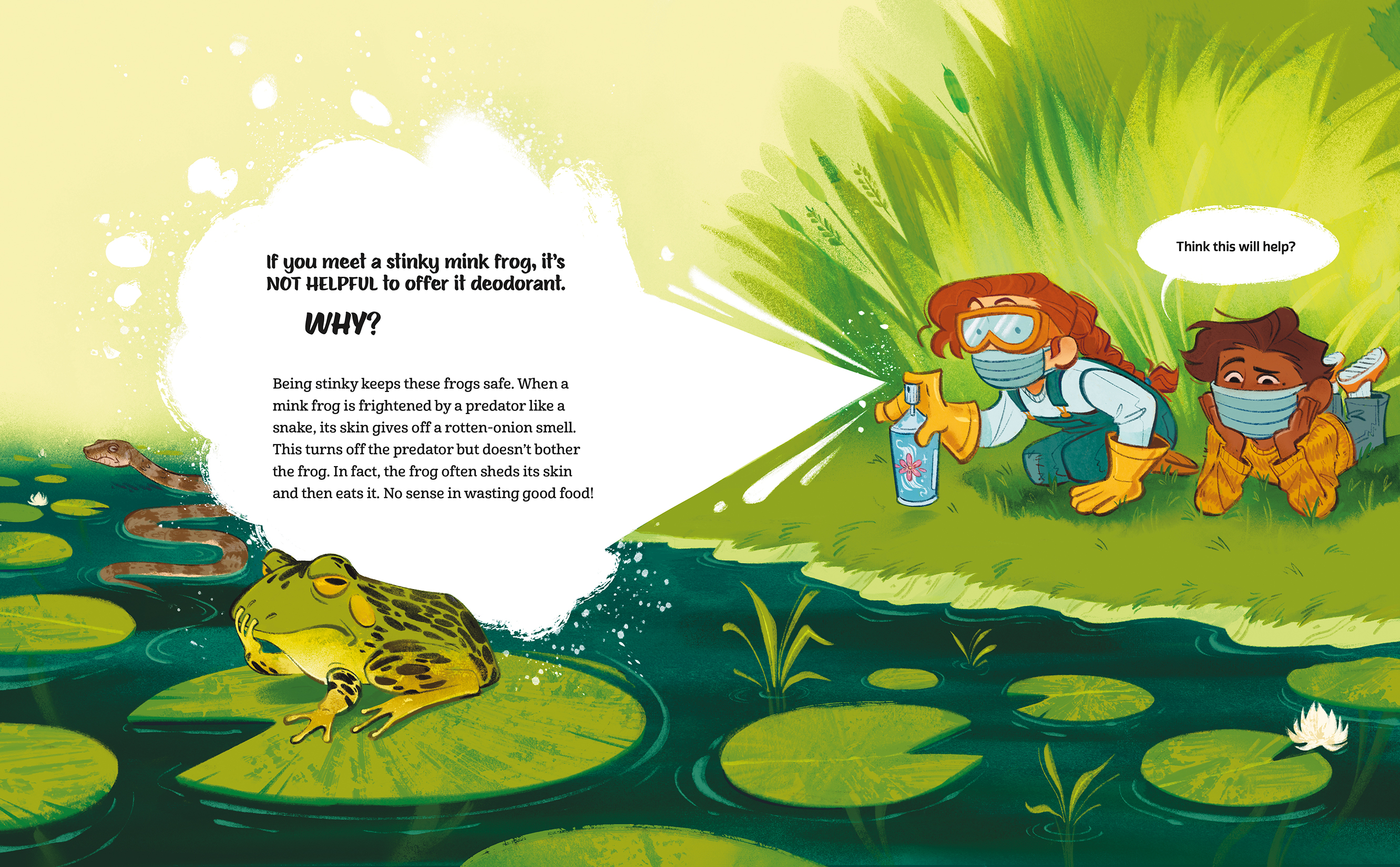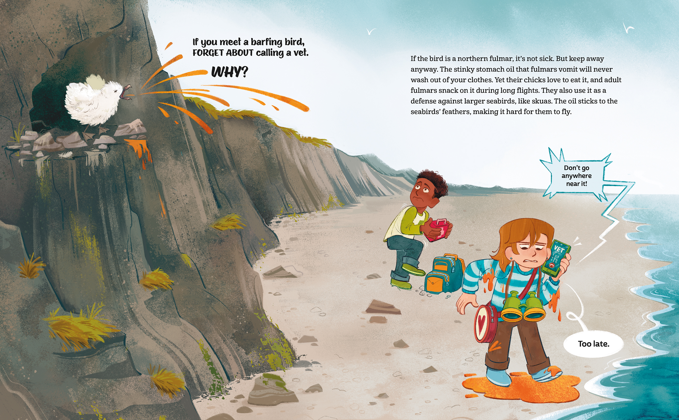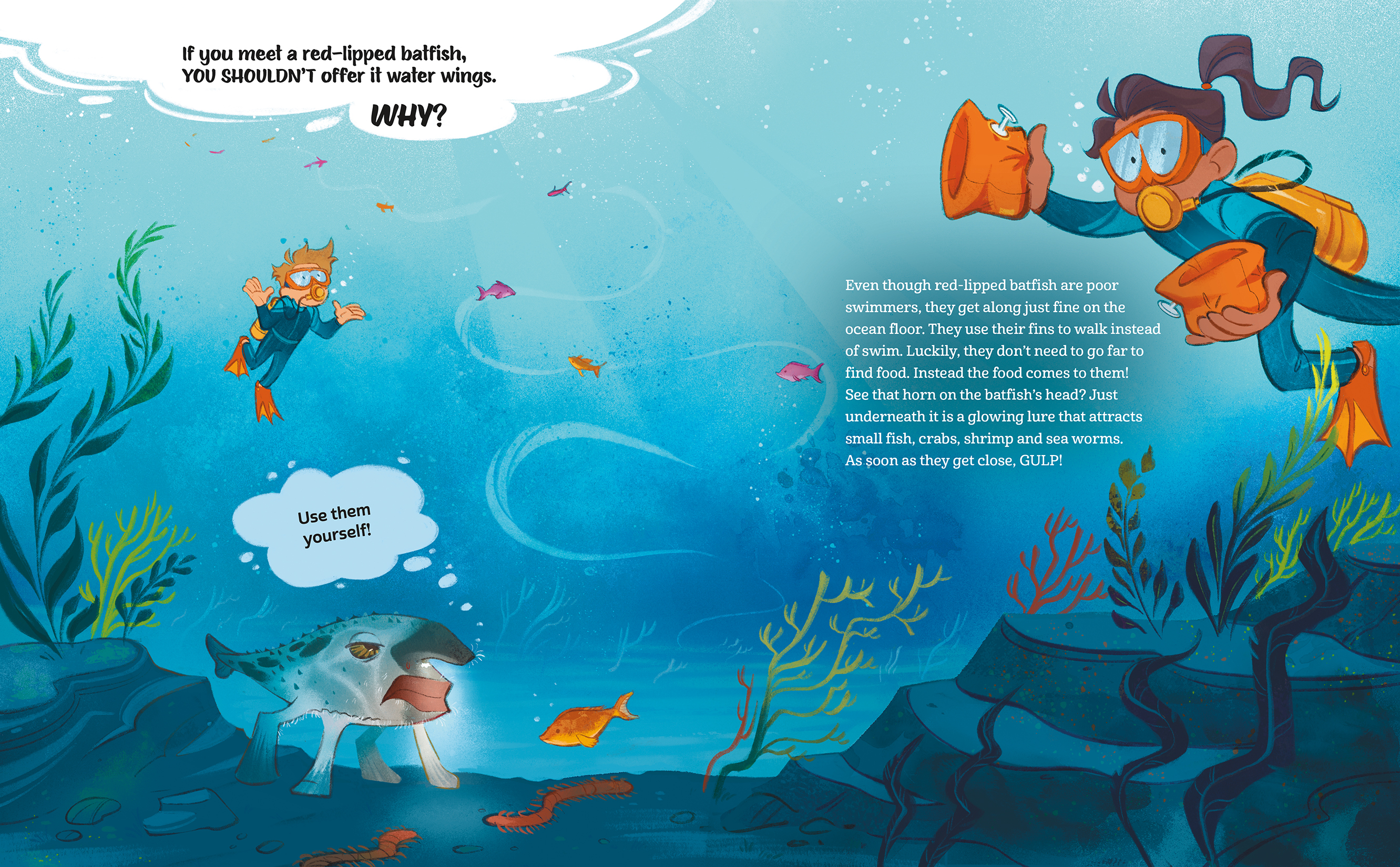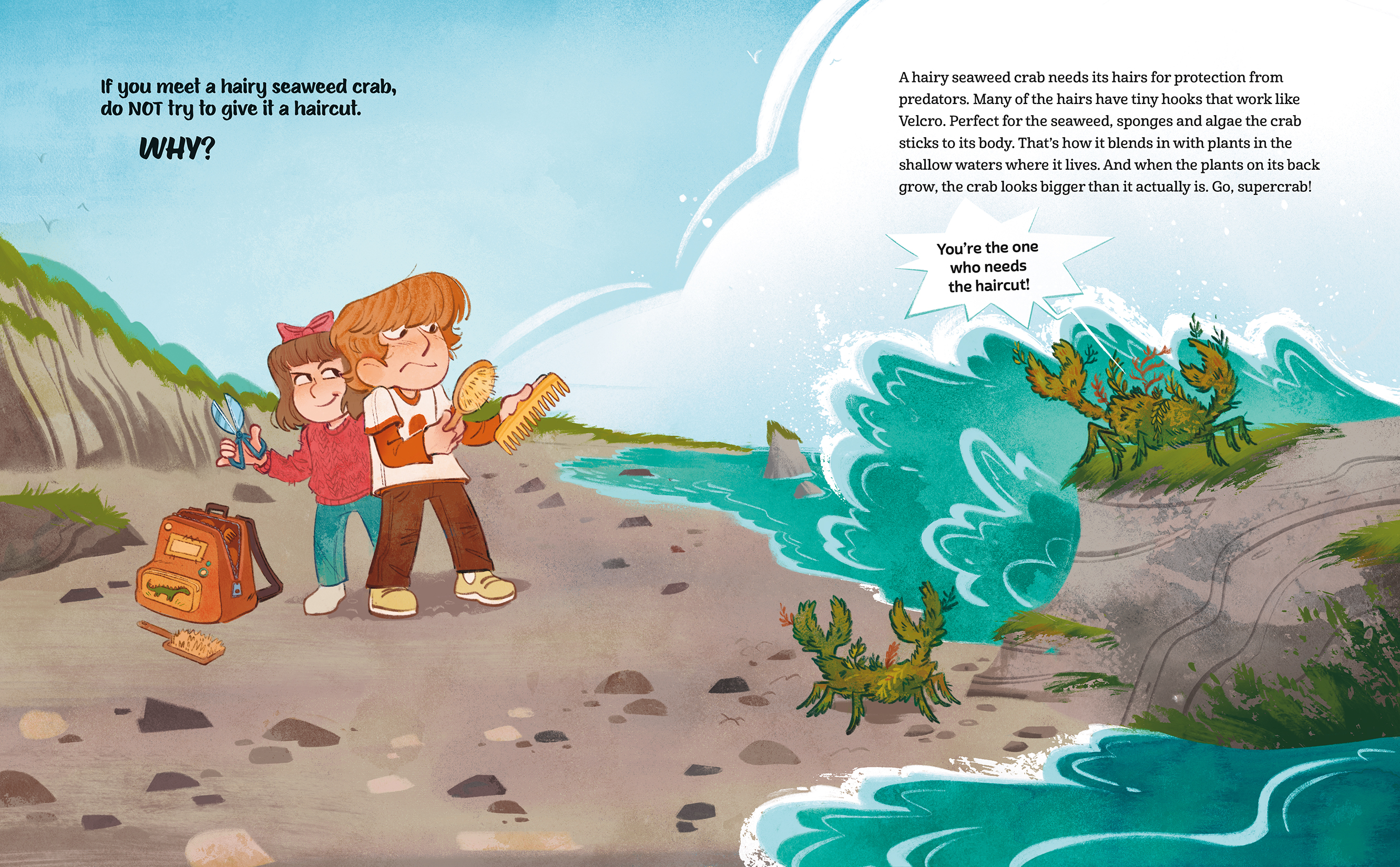 Animals have some unusual ways to survive in the wild. That’s why a sleeping bear might not appreciate an alarm clock. In fact, a wake-up call could be dangerous. In If You Meet a Barfing Bird, kids discover why they should definitely NOT help the animals they meet. A red-lipped batfish doesn’t want water wings and a hairy seaweed crab isn’t looking for a haircut. Hilarious situations and outraged reactions from animals make for a laugh-out-loud read.