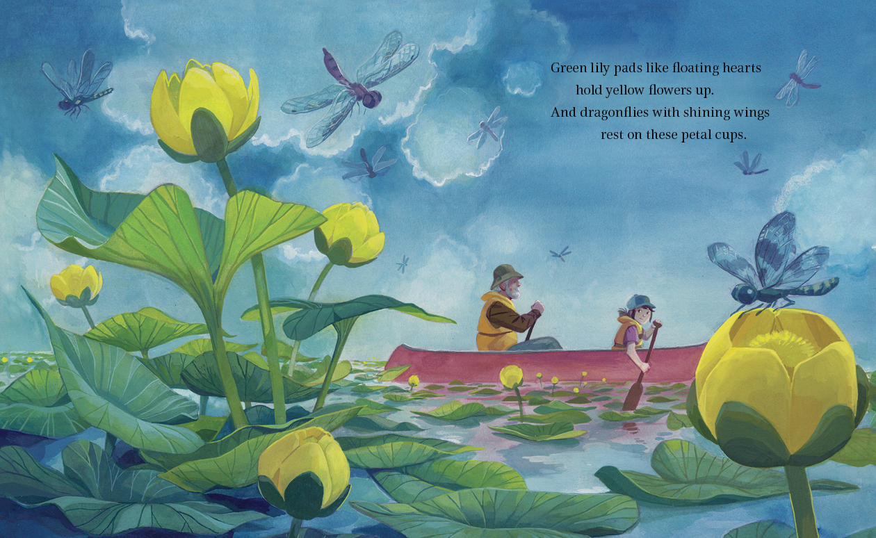 Fish and herons, turtles and dragonflies, beaver lodges and lily pads—a multitude of wonders enchant both the child narrator and any other nature lovers along for the ride in this tender, beautifully illustrated picture book.