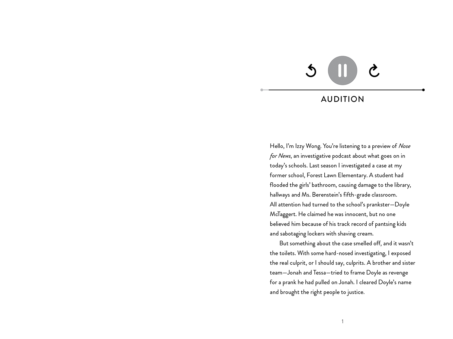 Before long Izzy's podcast is up and running as she interviews classmates and gathers clues about who might be behind the memes—but it isn't easy keeping socially afloat in two different programs, let alone snooping around treating everyone like a suspect. Soon the memester moves on to other targets, including Izzy, and when Izzy's parents find out, they want her to go to the principal. Now Izzy has a deadline. Can she find the culprit before the case is out of her hands?