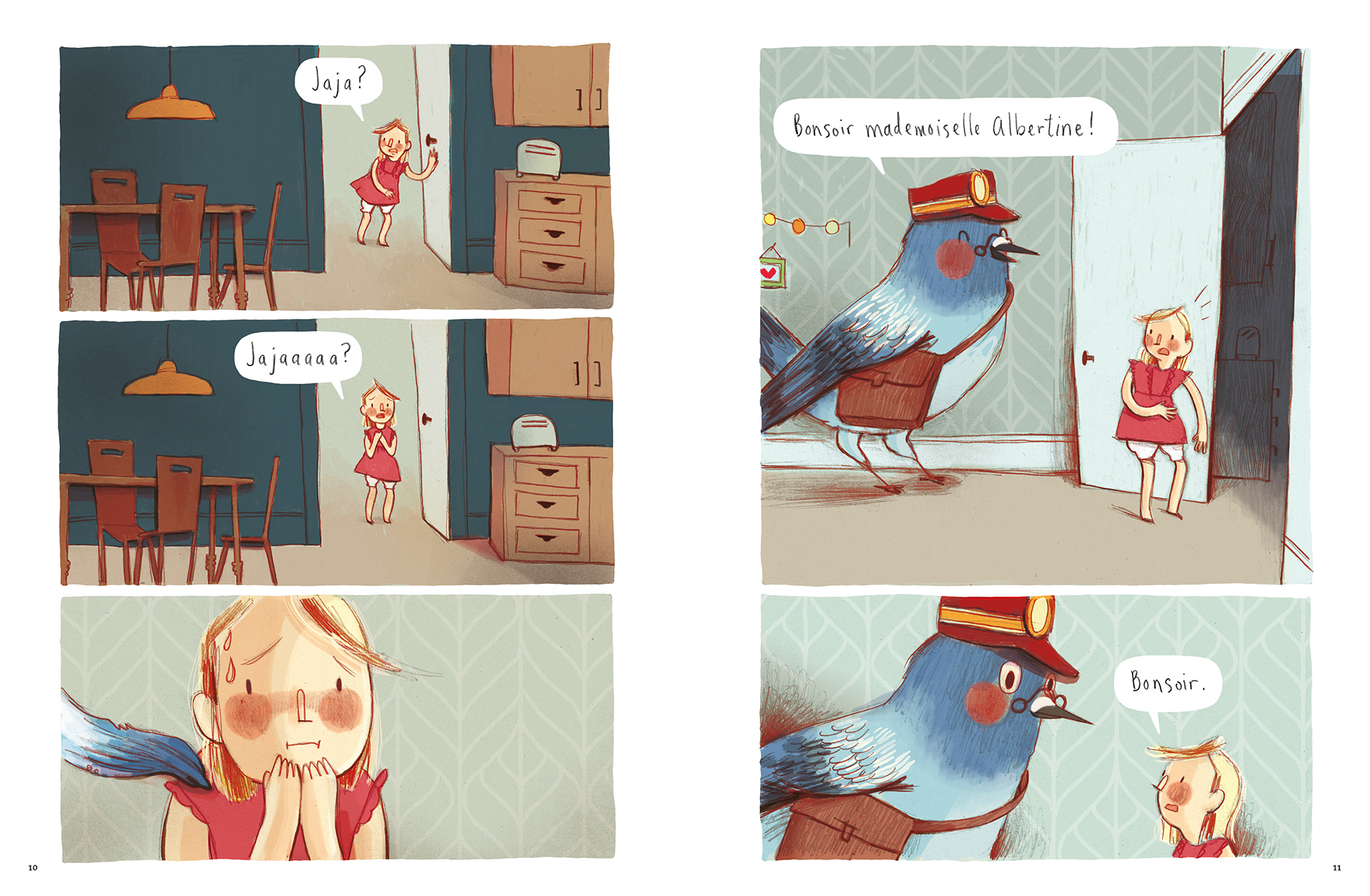 La sœur d’Albertine trouble la quiétude de la chambre à coucher avec ses ronflements, jusqu’à ce que la pièce devienne silencieuse. Où est donc passée Jaja?