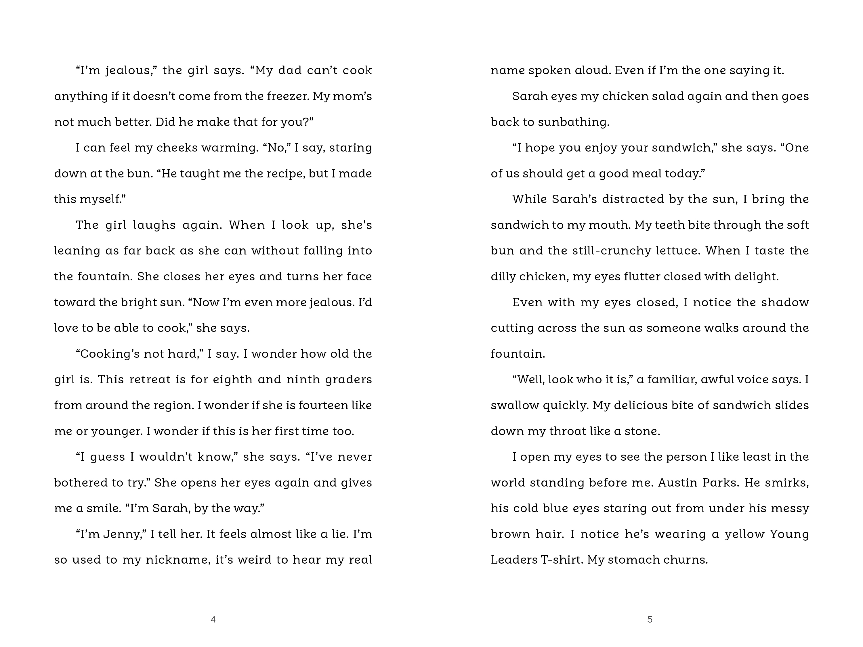 At school, Jenny Royce is bullied by Grade A Jerk Austin Parks. And now, not only is her tormentor spending March Break at the same retreat, she and Austin are grouped together for the camp’s main assignment! They have to run a stall at a local farmer’s market. The market could be a lot of fun. But when Jenny learns that Austin wants their group’s project to fail, she has to decide if she can risk standing up to him.