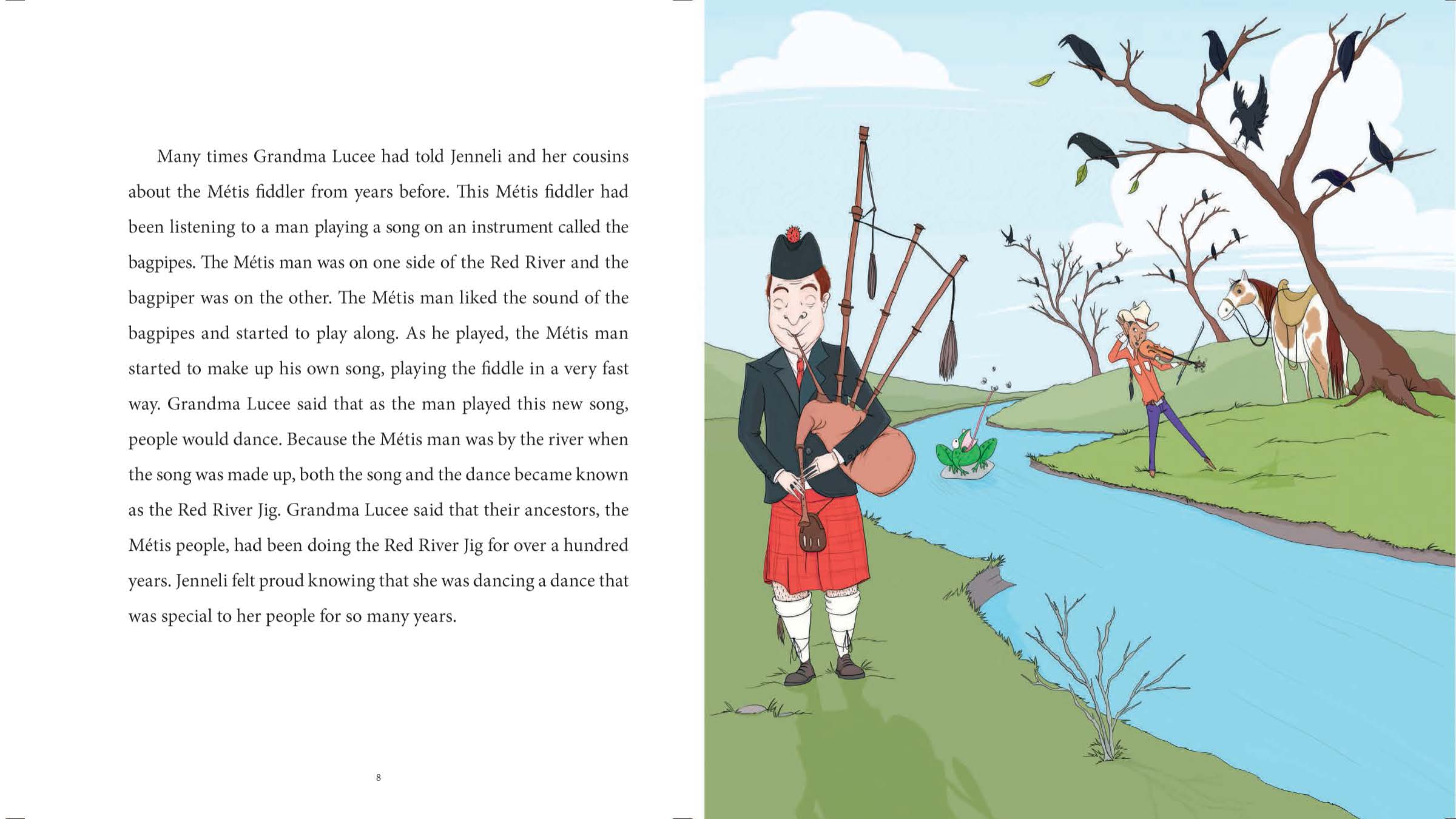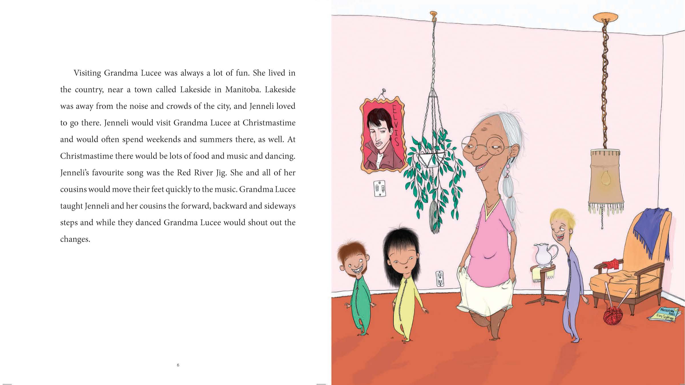 Jenneli is a young girl who feels that she is nothing special until she learns about the Métis Red River Jig from Grandma Lucee. One day Grandma Lucee enters Jenneli into the jigging contest, and Jenneli is both horrified and excited. With Grandma Lucee's love and support, Jenneli places her doubts and fears aside to dance in the contest.