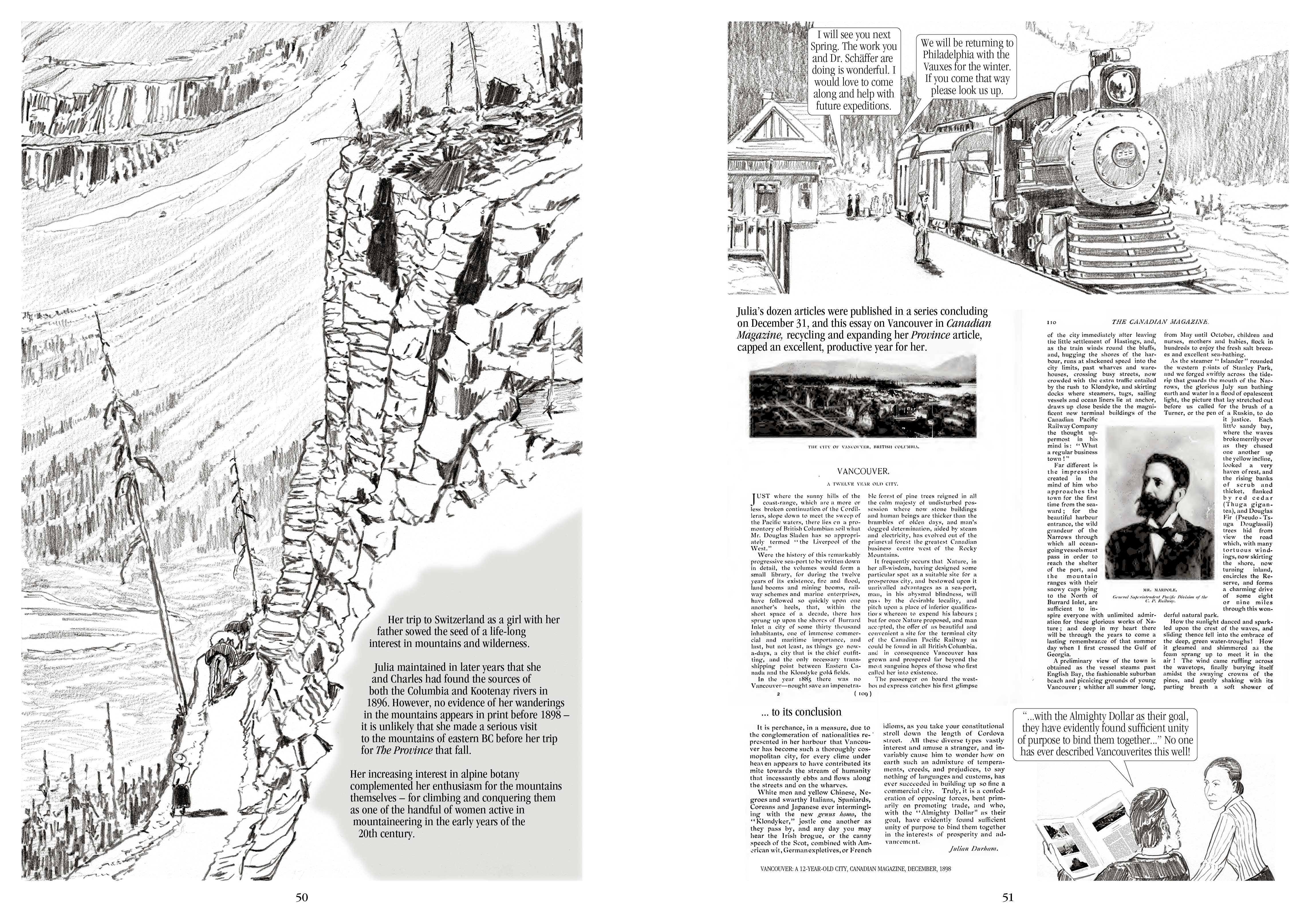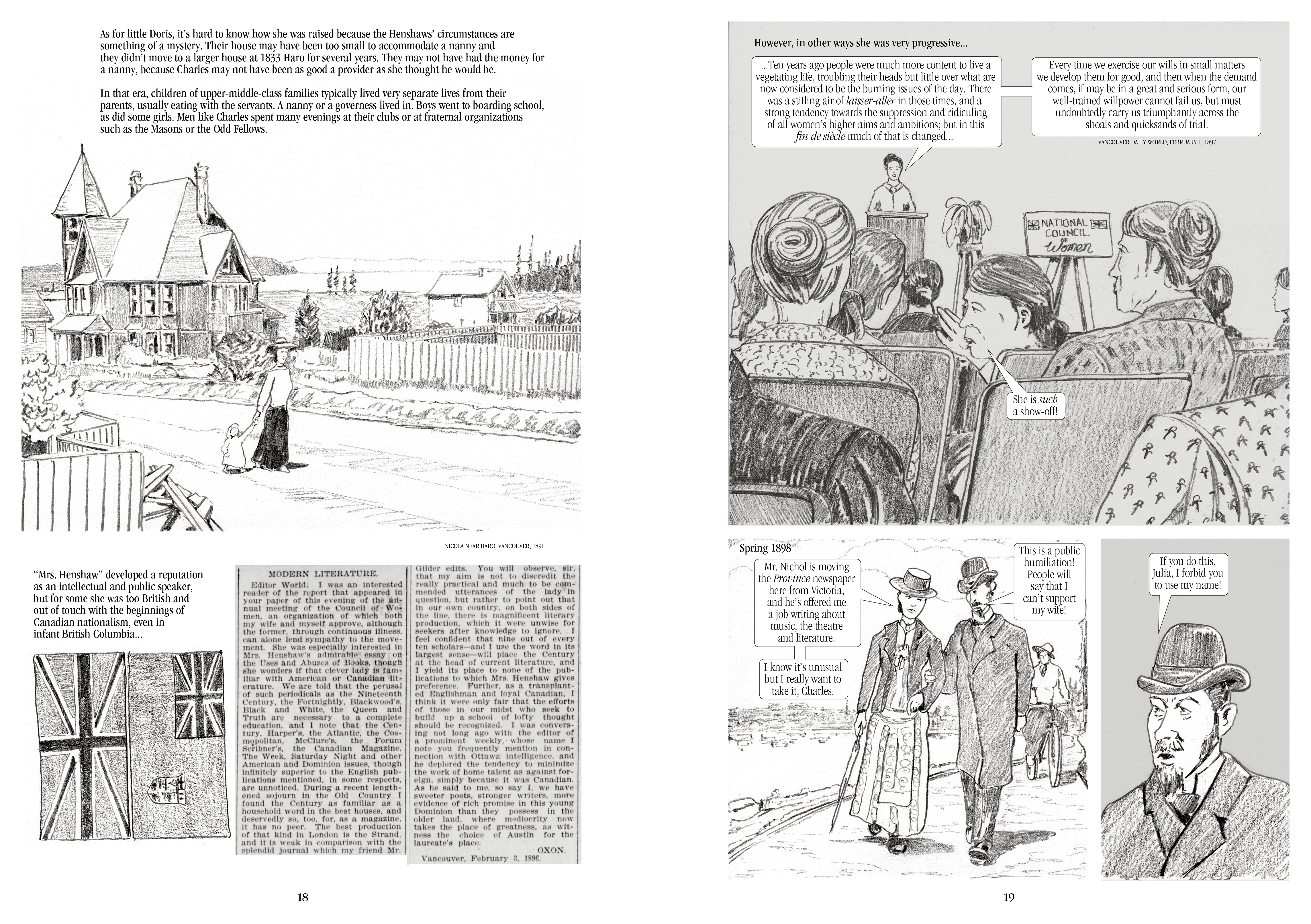 A novelist, journalist, socialite, botanist, explorer, and World War I ambulance driver, Julia Henshaw was a unique and colourful personality. This graphic biography follows her eventful life from Montreal to Vancouver, from Banff to London, and from the mining towns of BC’s Kootenays to the battlefields of France and Belgium. Her strongly expressed views of women’s roles and voting rights, of racial and class issues, and of Canada’s relationship to Great Britain and the US are an illuminating contrast with the values of her contemporaries, and with society today.