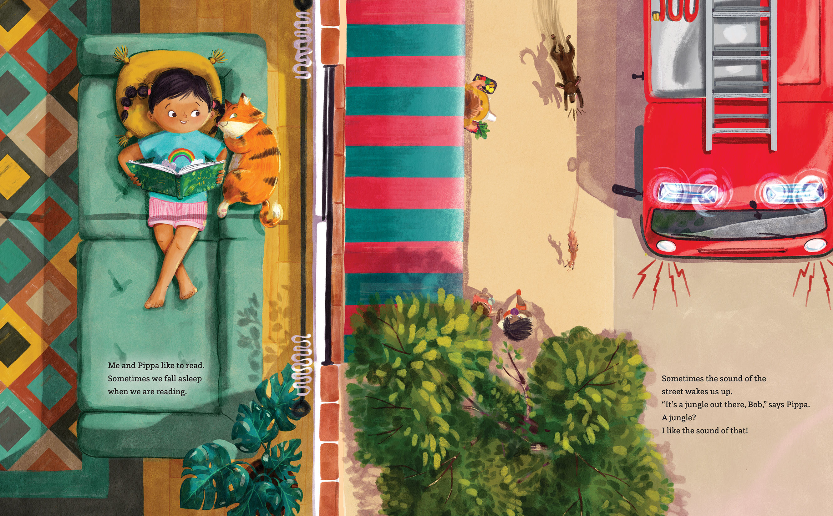 Bob is an orange tabby cat with big dreams. He lives in a safe and friendly apartment building with his human, Pippa, but Bob knows he is more than an indoor cat—he's a Jungle Cat! When he sneaks outside to chase after his dream, Bob's adventure suddenly gets too wild. It's a good thing jungle cats know when to ask for help!