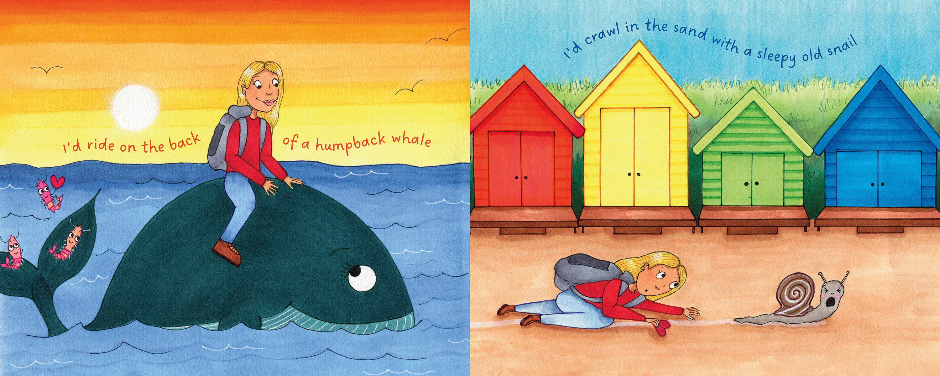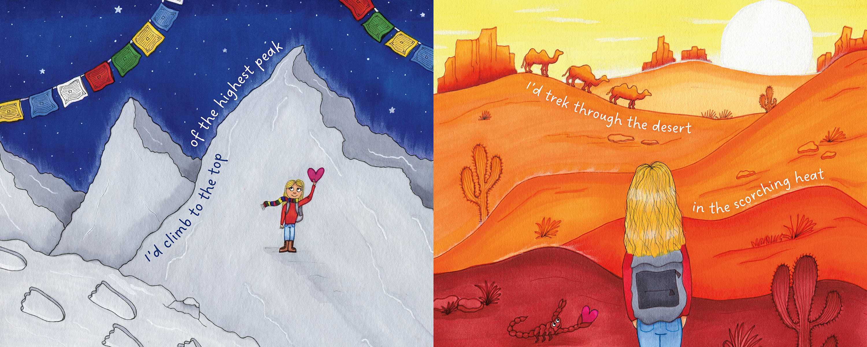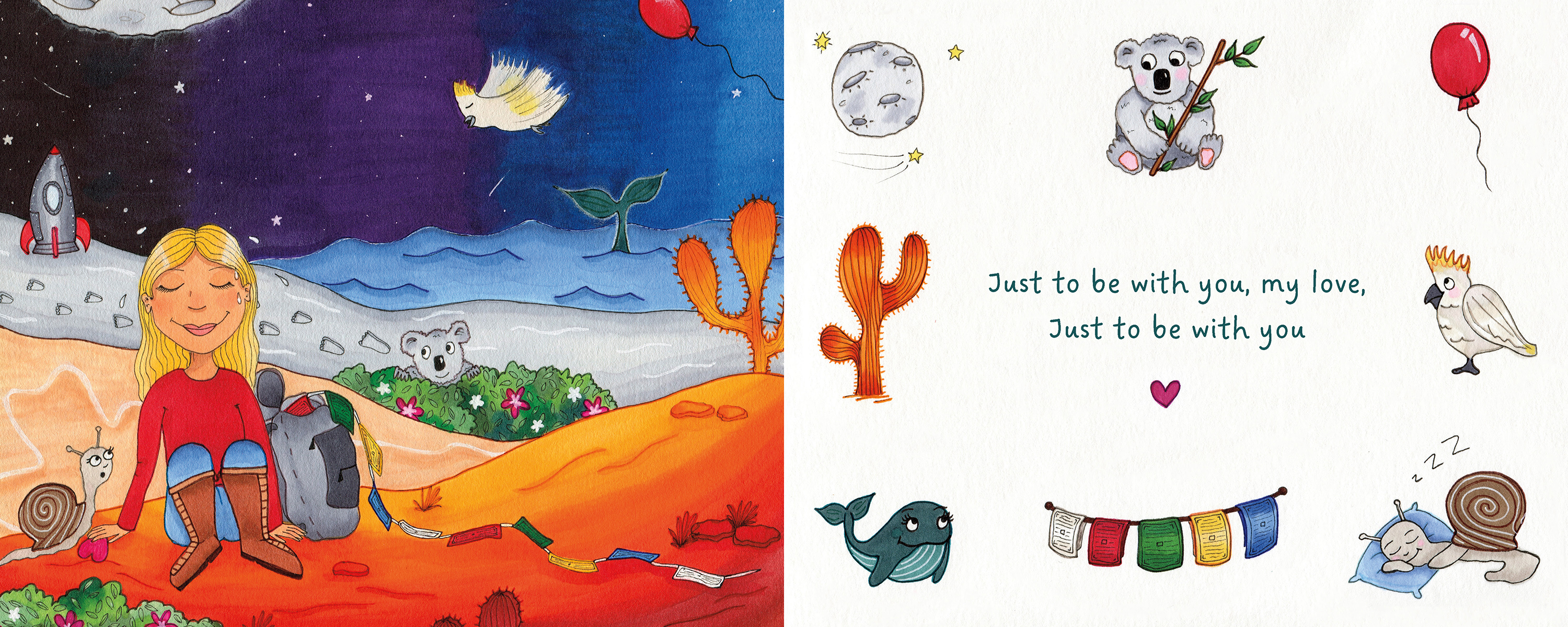 Just to Be With You is all about the lengths we go to in order to show our love for someone. To prove her love and make her way back to her family, the narrator goes on an expedition around the world, trekking through shark-infested waters and treacherous mountain winds, and doing the scariest thing of all—singing solo on a stage in a room packed with people!