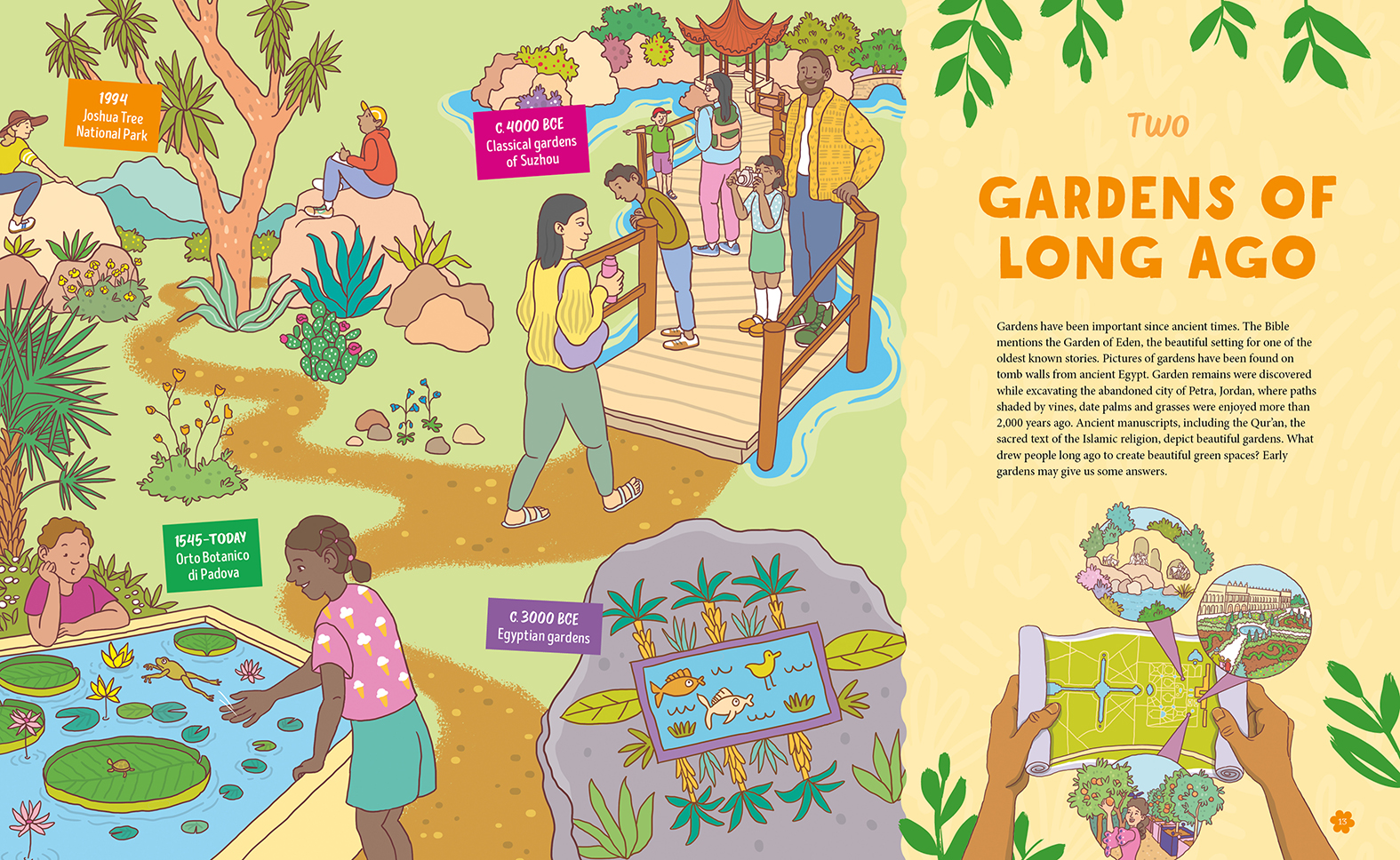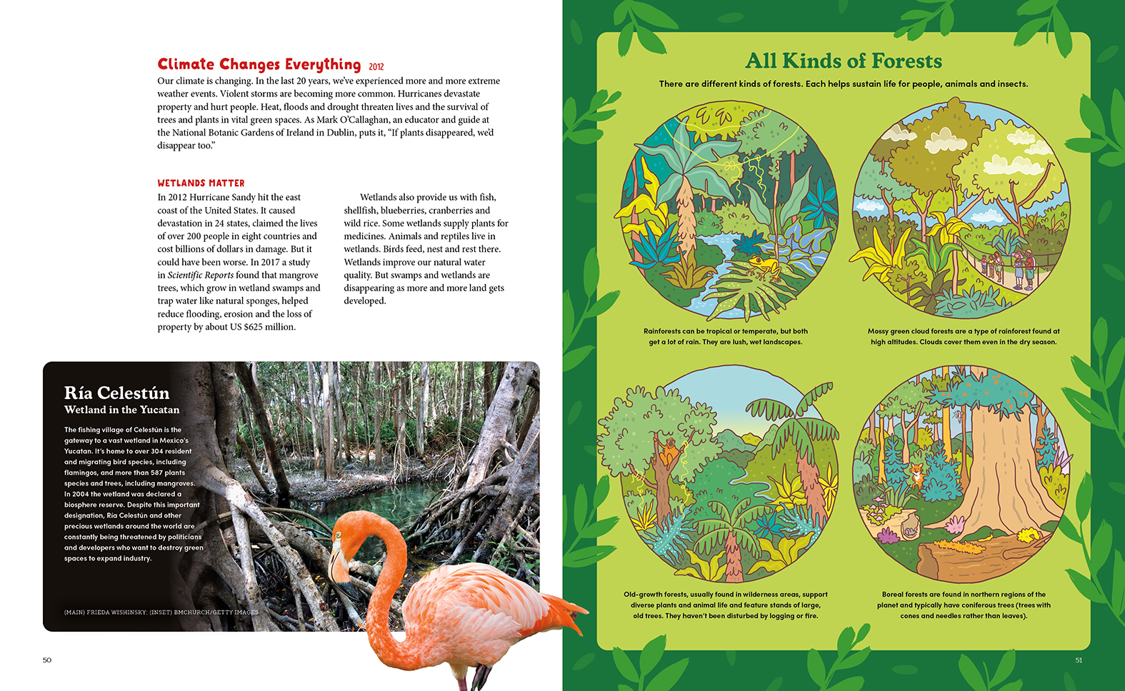 Keep Our World Green looks at how green space has evolved throughout history, from the first public garden to the origins of bonsai trees. It examines the political, social and environmental challenges of maintaining green spaces because of pollution, inequality and the effects of the climate crisis. It also introduces the people working to protect these places for the future—you can be a green space activist too! Come on, let’s take a walk in the park together!