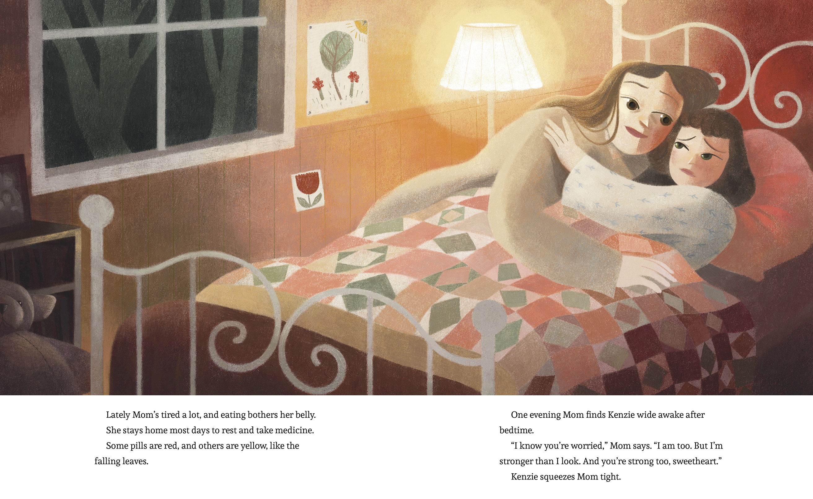 It seems delicate, just like her mom, who doesn't always feel well. As the seasons change, her mom's health has ups and downs, and the tree sways in the wind and weather. Sometimes her mom is too tired to play, and they just cuddle. Other times, she has to go to the hospital. During the winter, she's away for many days. When a snowstorm hits, Kenzie frantically tries to keep the tree warm. And she worries: Has she broken her promise? But no matter the challenges, come springtime, the tree is still there, blossoming and strong—just like her mom, and just like Kenzie.