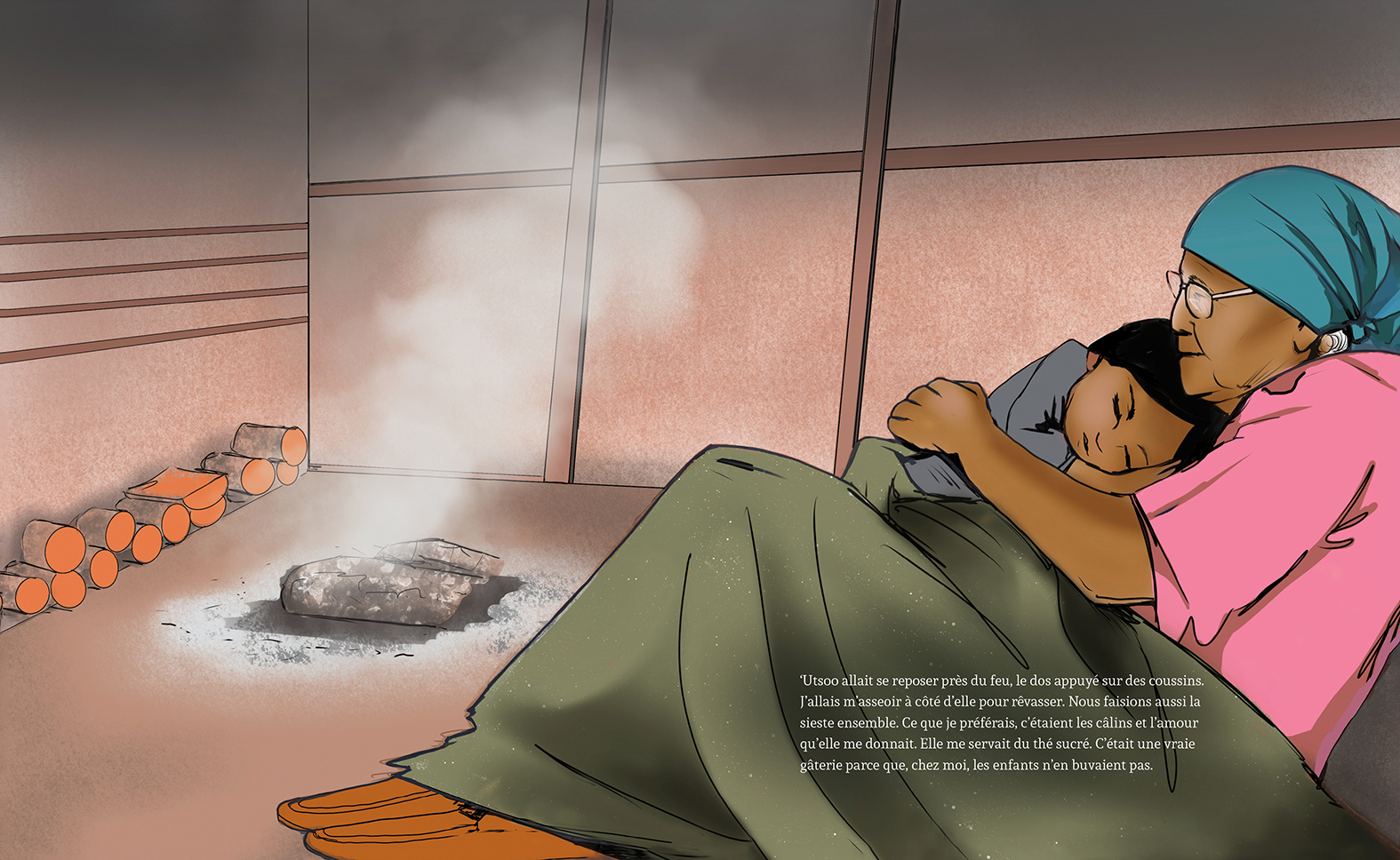 Mary avait quatre ans lorsqu’on l’a emmenée pour la première fois au pensionnat pour Autochtones de Lejac, bien loin de sa maison et de sa famille. Toujours affamées et frigorifiées, la jeune Mary et les autres filles vivaient sans confort. On leur interdisait de parler leur langue, le dakelh. De plus, les religieuses et le prêtre les surveillaient constamment, prêts à les punir. Mary et les autres filles ont eu une idée de génie : s’inspirant des connaissances de leurs mères, de leurs tantes et de leurs grands-mères, qui étaient toutes des couturières très habiles, les filles ont cousu des poches dans leurs vêtements pour y dissimuler de la nourriture. Elles rassemblaient des bouts de tissu en cachette et cousaient la nuit, puis elles cachaient des pommes, des carottes et des morceaux de pain dans leurs poches secrètes pour les partager avec les pensionnaires plus jeunes.