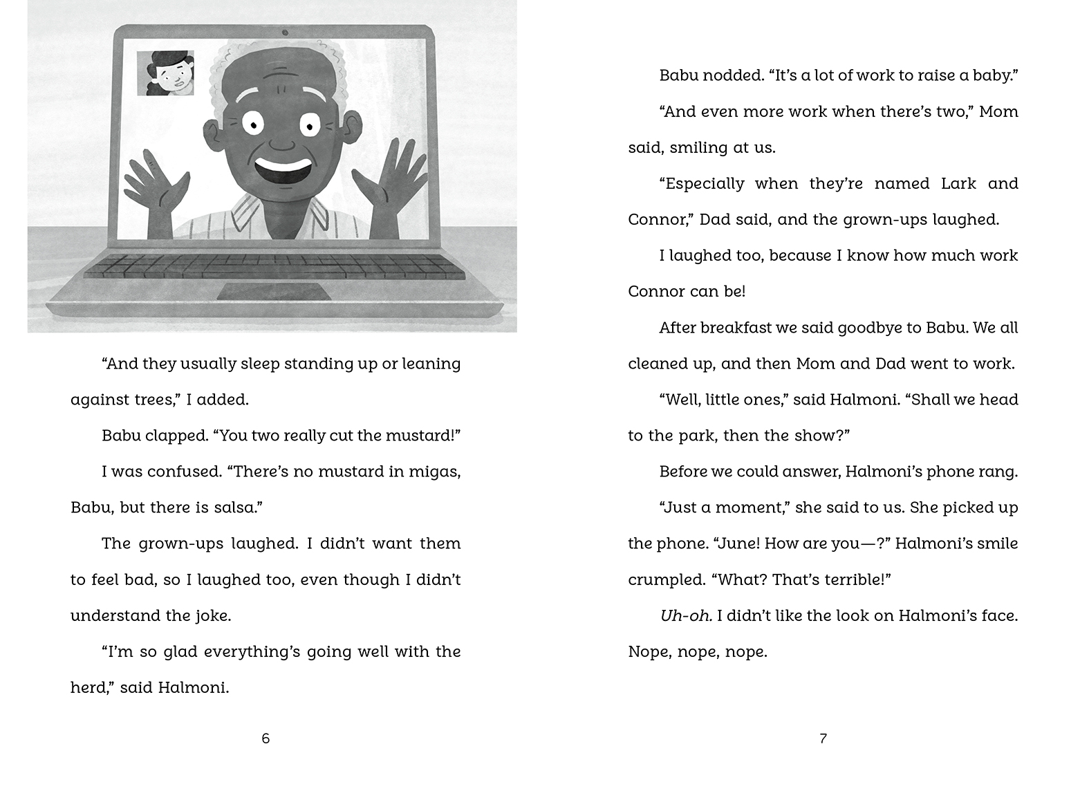 Lark and Connor are ready for a sunny day at the splash pad when their halmoni (grandmother) gets a call from her friend Miss June.