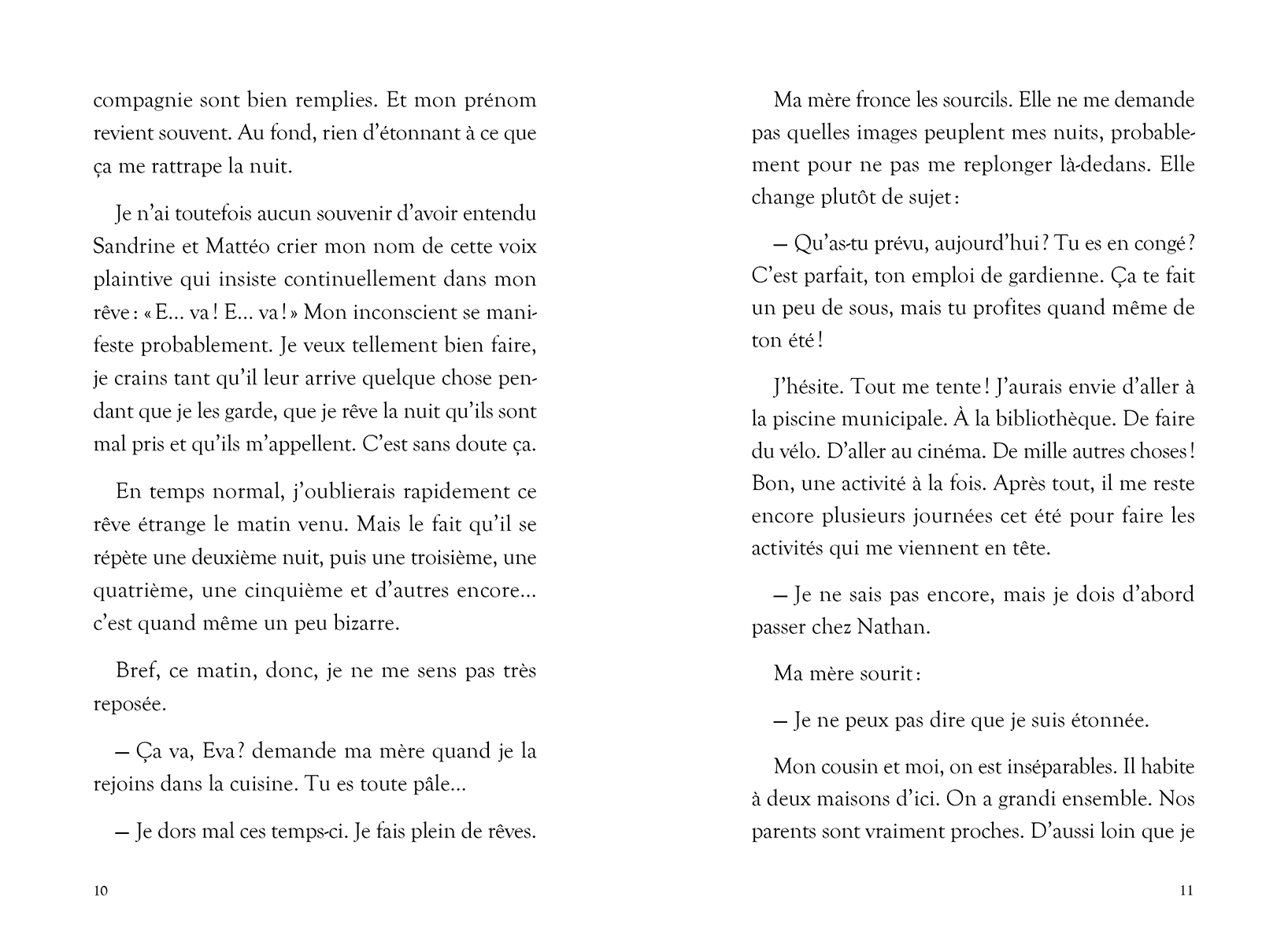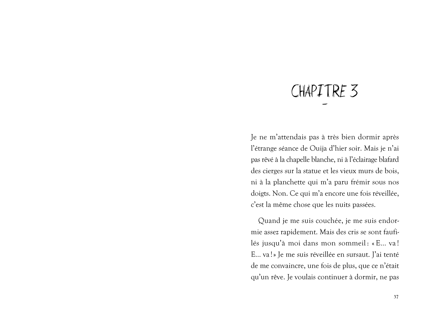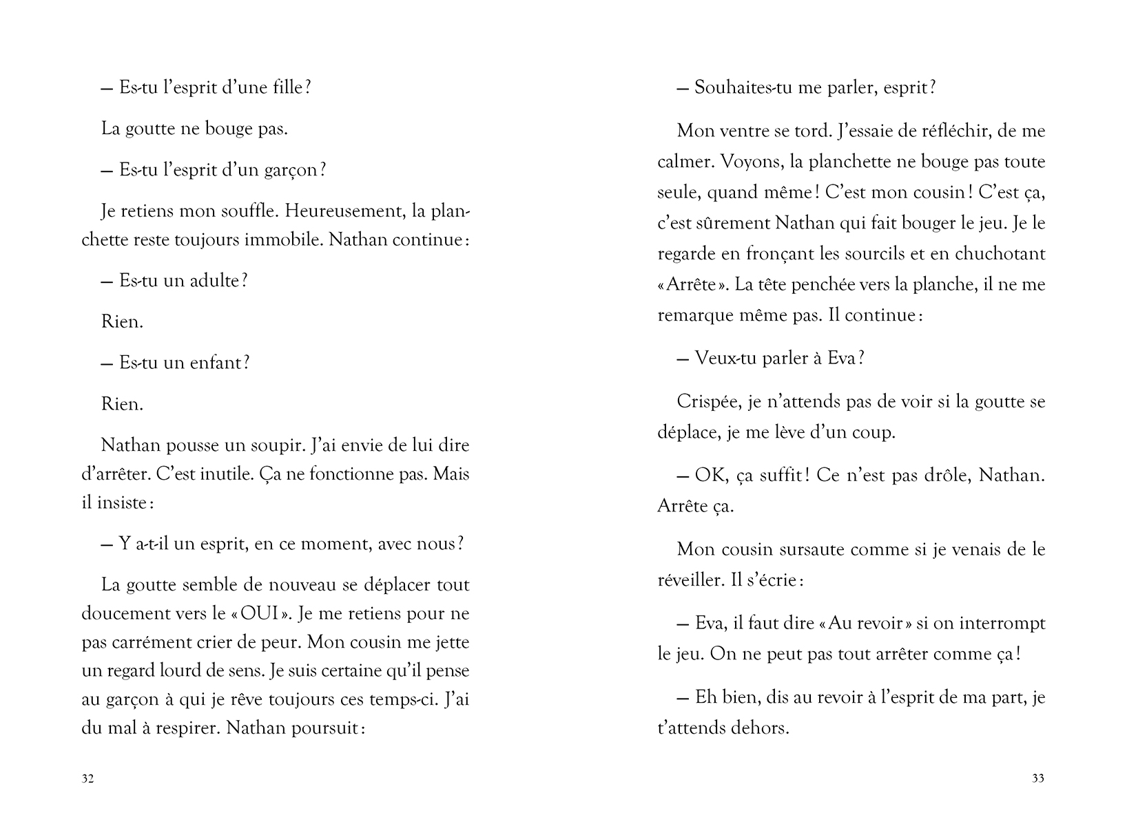 Eva fait sans cesse le même cauchemar : un jeune enfant l’appelle. « E...va... E...va... » Comme elle garde des enfants qui l’interpellent tout au long de la journée, pas étonnant d’entendre son nom résonner dans ses rêves! Pourtant, cette voix ne ressemble à aucune voix connue… et Eva a de plus en plus de mal à dormir. Son cousin Nathan et elle tentent de comprendre ce qui hante les rêves d'Eva. La planchette de Ouija pourra-t-elle les aider? À mesure que leurs recherches progressent, les secrets semblent se multiplier. Quelle terrifiante vérité se cache derrière ce songe?
