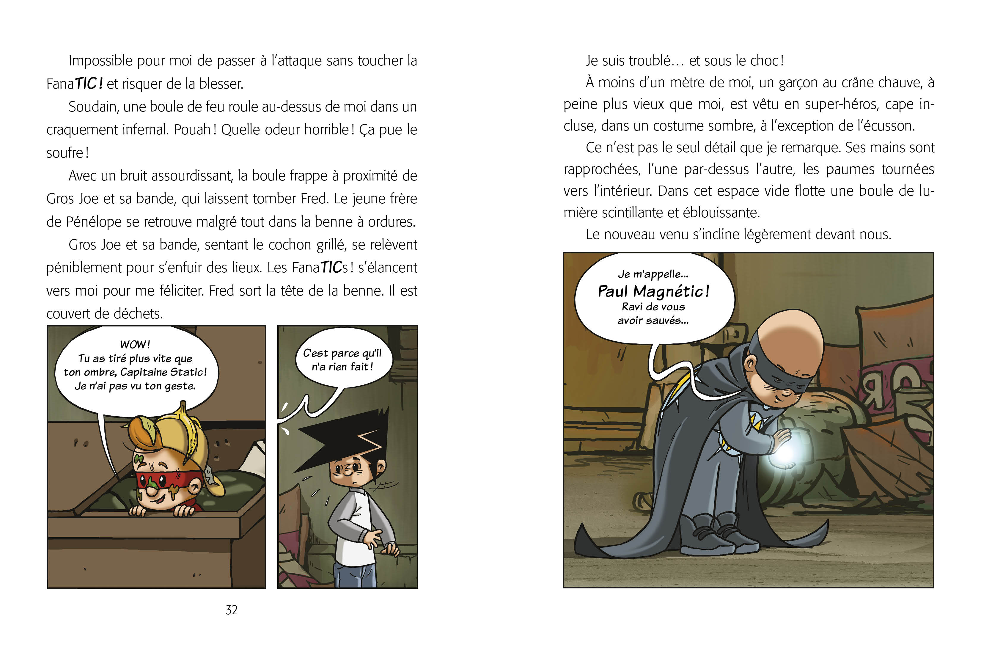 Le Capitaine Static a enfin un fan-club ! Huit jeunes admirateurs sont membres du groupe et suivent leur idole à la trace. Il faut dire que jusque-là, Capitaine Static était encore le seul super-héros en ville… mais voilà qu’un nouvel élève se pointe et qu’il possède non seulement un costume, mais aussi un pouvoir étonnant ! La compétition s’annonce féroce…