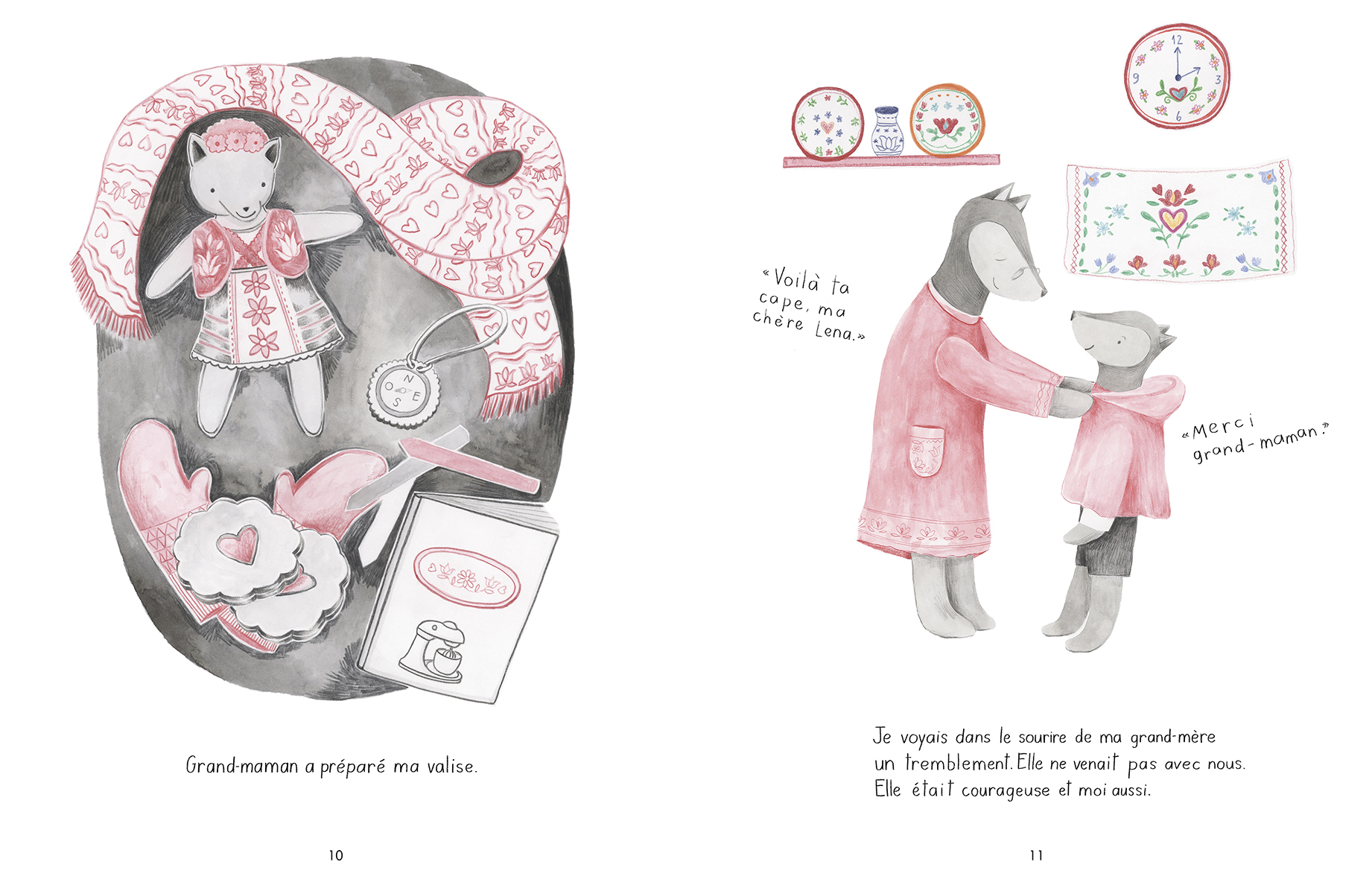 Lena la petite louve adore les galettes de sa grand-maman. Elles ont le goût de son pays, qu’elle a dû laisser derrière elle. Sur sa nouvelle terre d’accueil, Lena doit tout recommencer. Elle est confrontée aux préjugés et doit combattre l'ignorance.